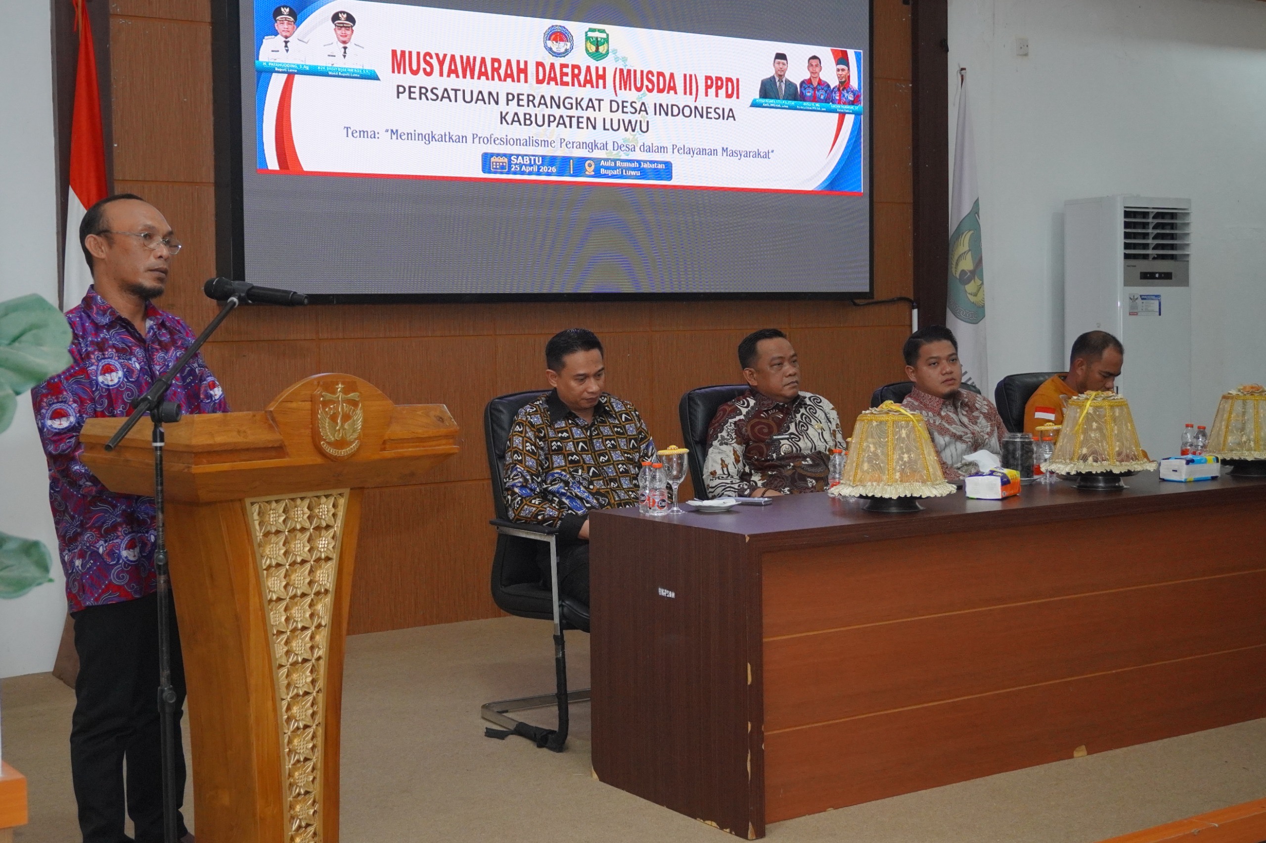 Bupati Luwu, Patahudding, secara resmi membuka Musyawarah Daerah (Musda) Persatuan Perangkat Desa Indonesia (PPDI) Kabupaten Luwu yang digelar di Aula Rumah Jabatan Bupati Luwu, Sabtu (25/4/2026).