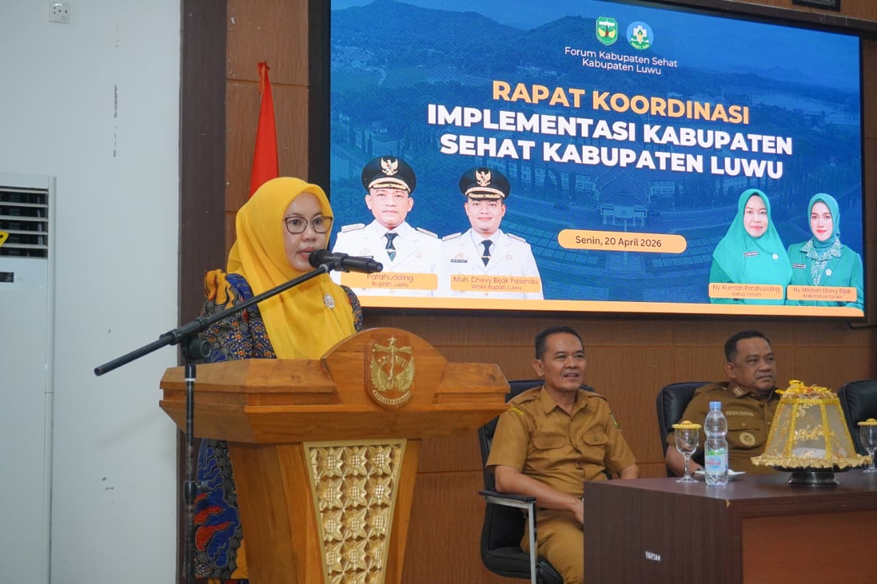 Bupati Luwu, Patahudding, membuka Rapat Koordinasi Penguatan Forum dan Implementasi Kabupaten Sehat Luwu di Aula Rujab Bupati Luwu, Senin (20/4/2026).