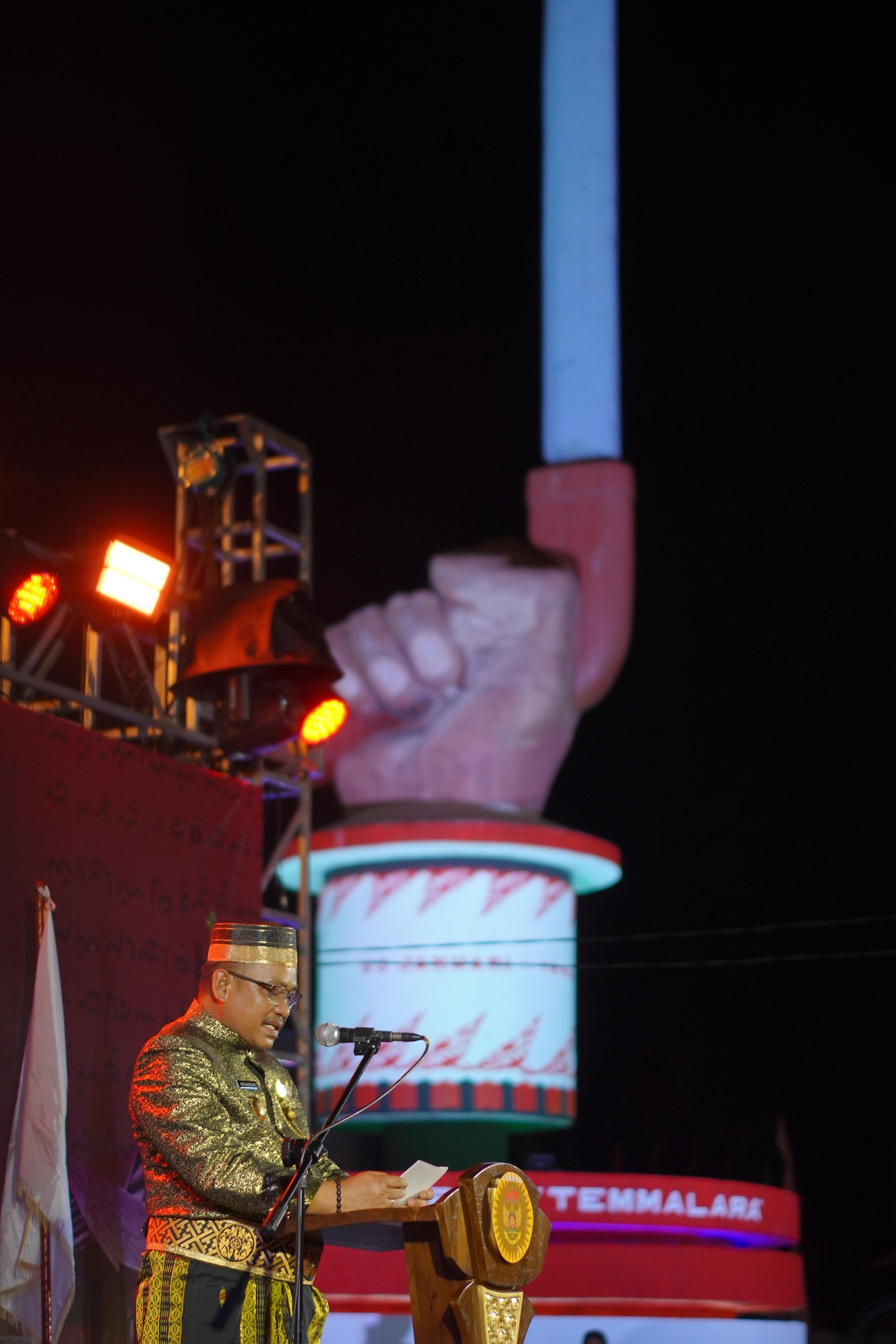 Bupati Luwu, Patahudding, menyampaikan nilai sejarah dan budaya Luwu pada malam puncak peringatan Hari Jadi Luwu (HJL) ke-758 dan Hari Perlawanan Rakyat Luwu (HPRL) ke-80 yang dirangkaikan dengan jamuan makan malam bersama Forum Silaturahmi Keraton Nusantara (FSKN) di Istana Kedatuan Luwu, Kota Palopo, Jumat (23/1/2025).