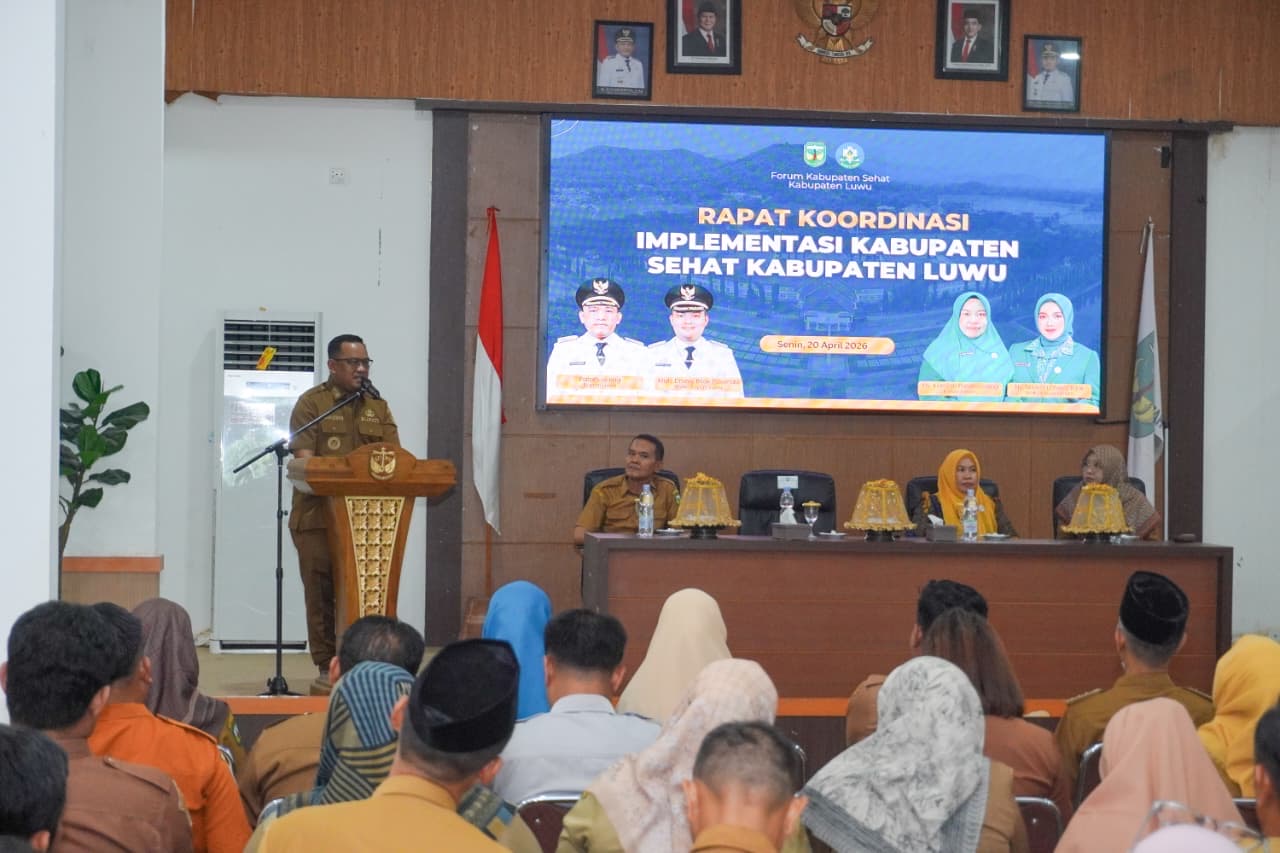 Bupati Luwu, Patahudding, menekankan pentingnya pelaksanaan Program Gerakan ASRI (Aman, Sehat, Resik, dan Indah) sebagai upaya mewujudkan lingkungan yang bersih dan sehat. Penegasan tersebut disampaikan saat membuka Rapat Koordinasi Penguatan Forum dan Implementasi Kabupaten Sehat Luwu di Aula Rumah Jabatan Bupati Luwu, Senin (20/4/2025).
