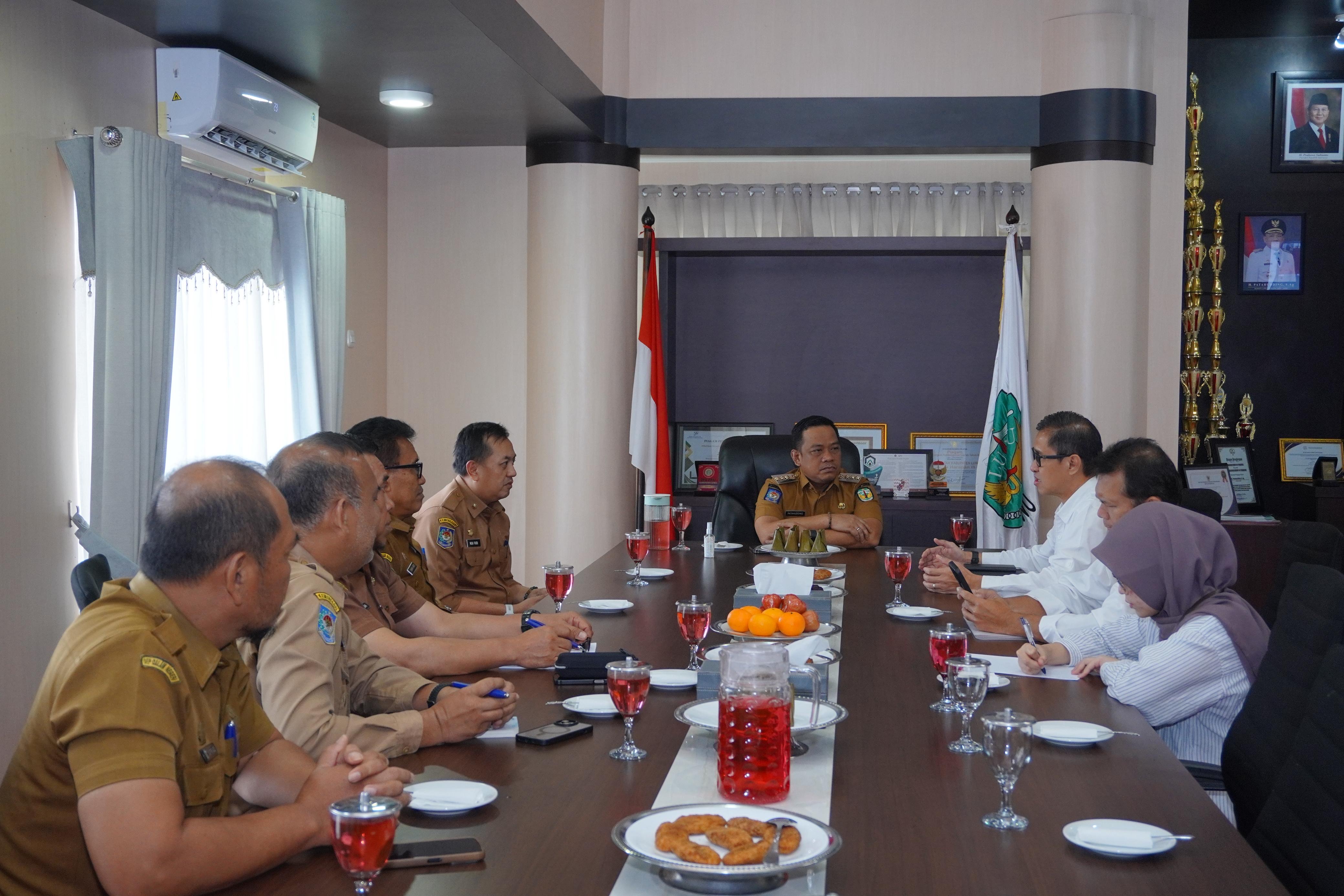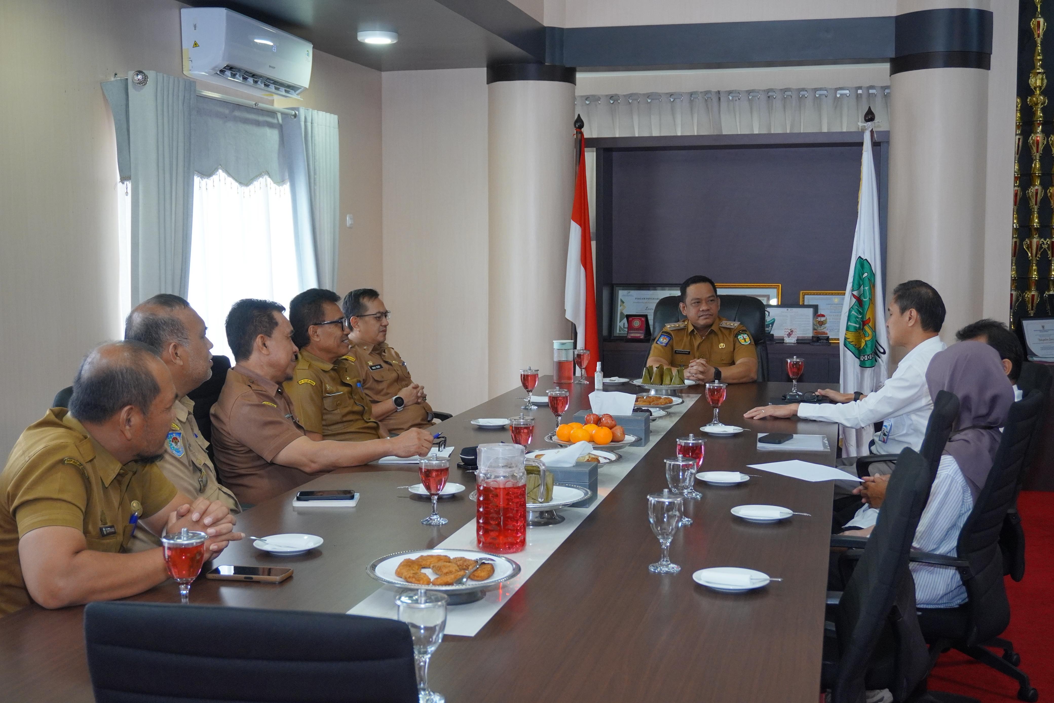 Bupati Luwu, Patahudding, menerima kunjungan silaturahim Direktur Mobilisasi Sumber Daya Pengendalian Perubahan Iklim Kementerian Lingkungan Hidup, Irawan Asa’ad, di ruang kerja Bupati Luwu, Selasa (7/4/2026).
