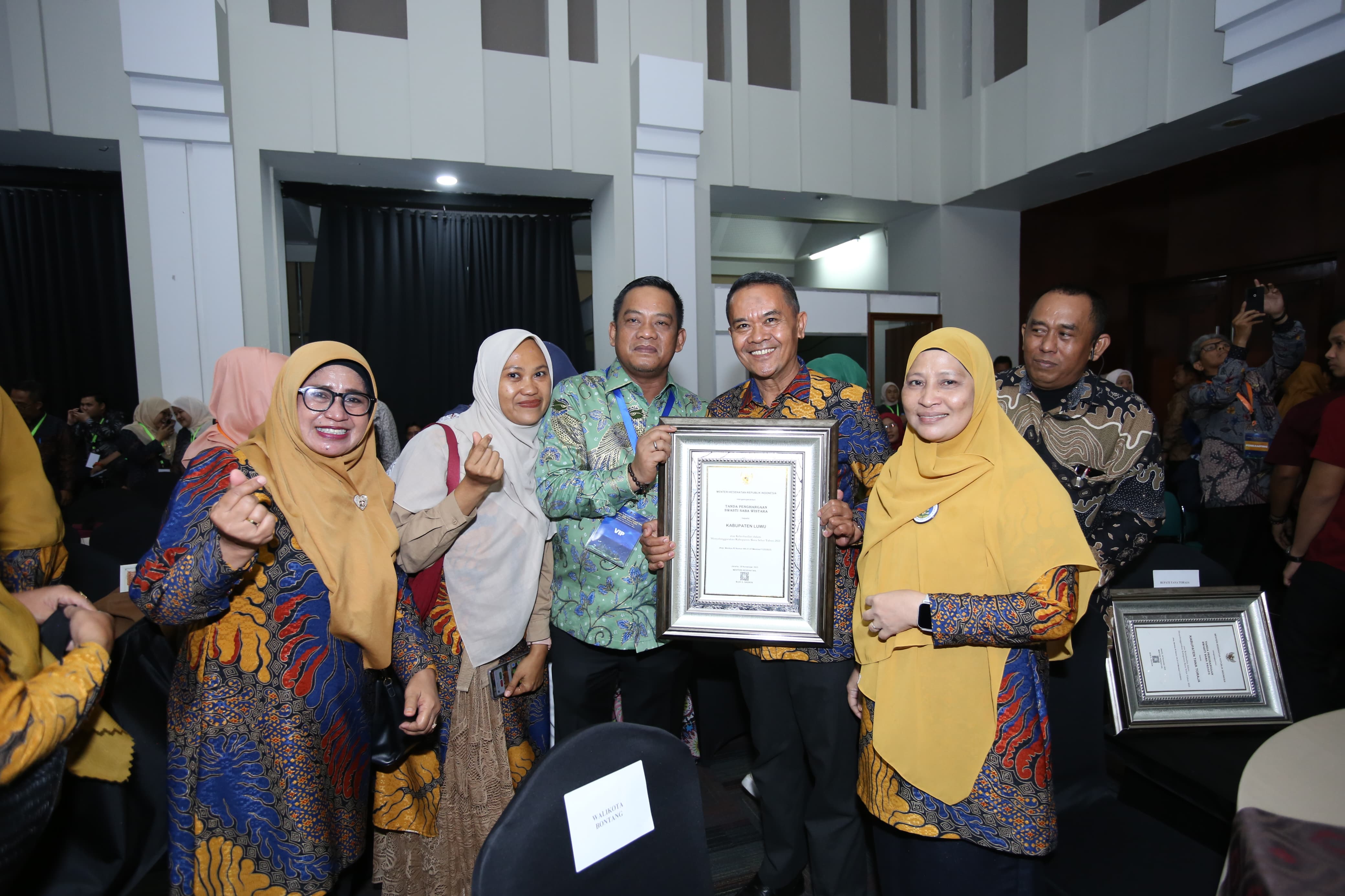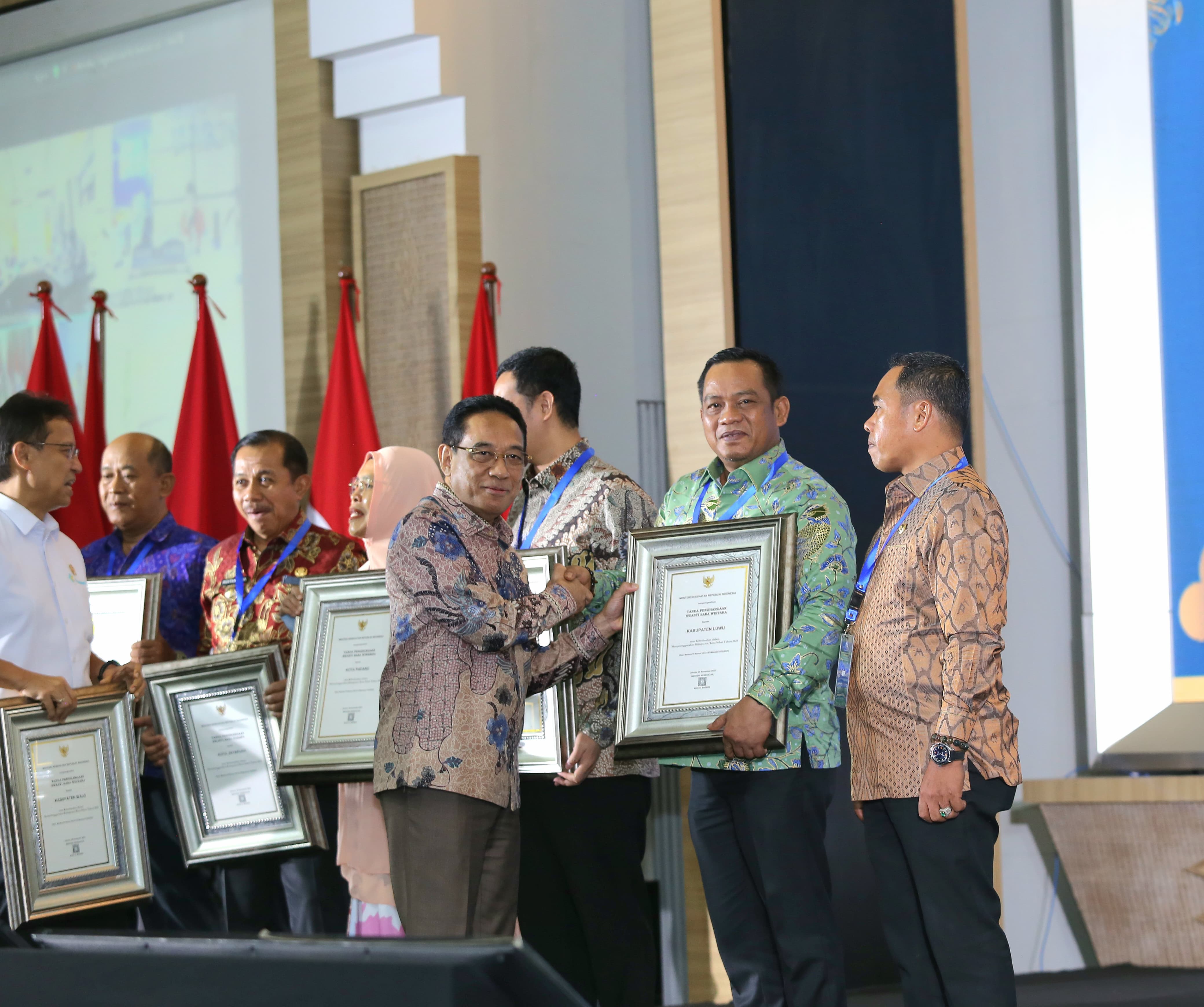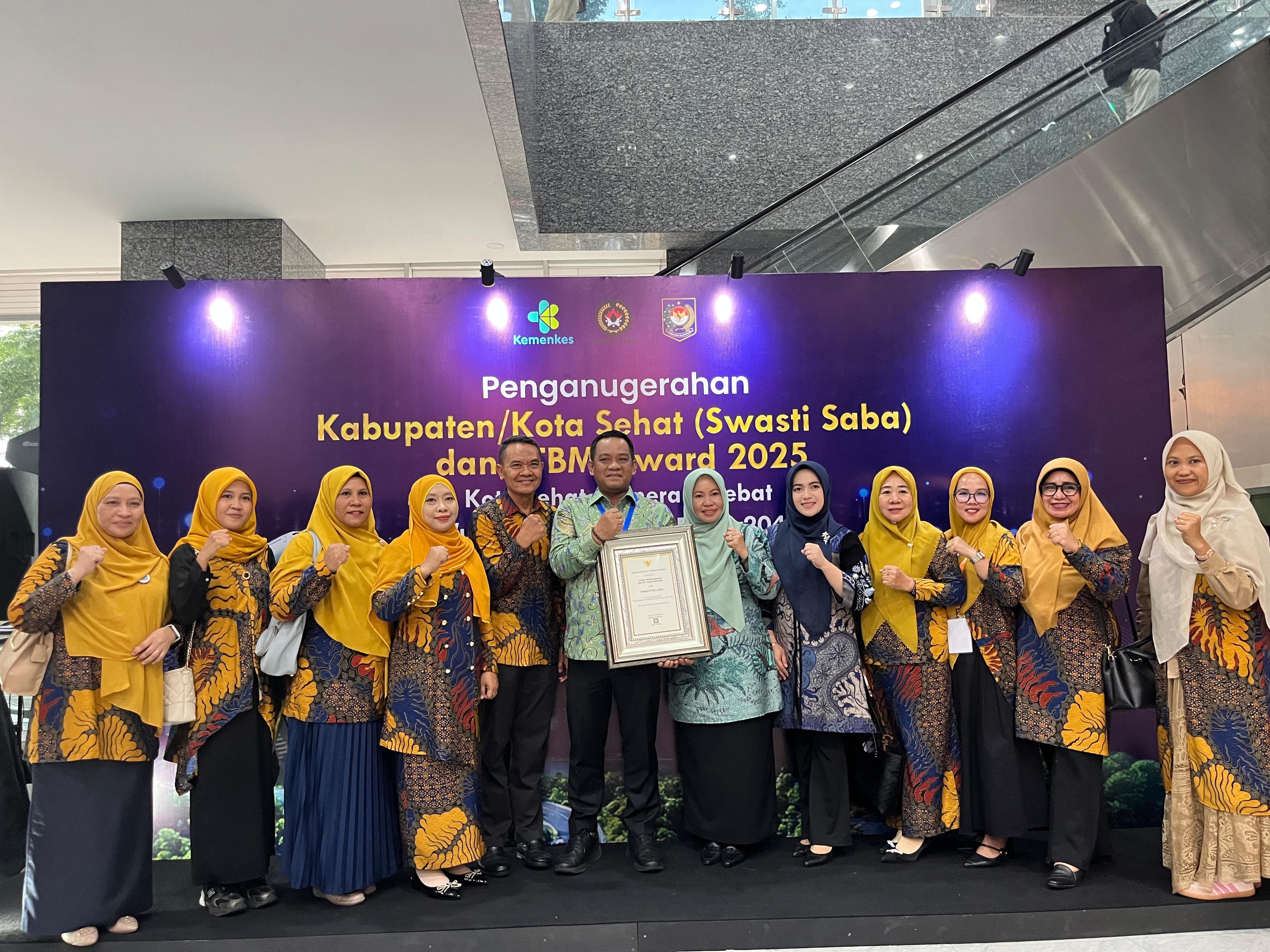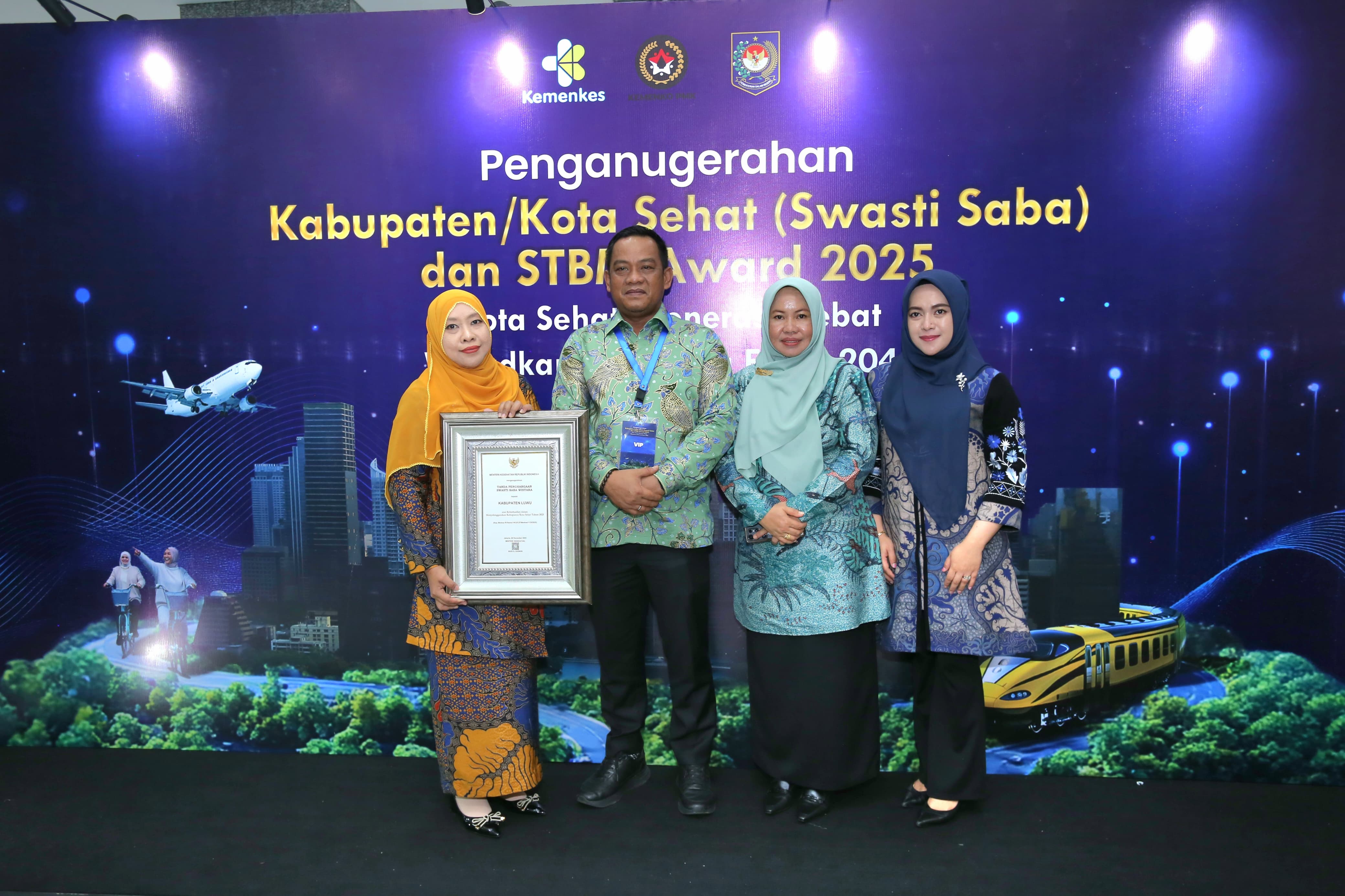 Bupati Luwu, Patahudding, menerima penghargaan Swasti Saba Wistara dari Kementerian Kesehatan pada acara Penganugerahan Kabupaten/Kota Sehat dan STBM Tahun 2025 yang berlangsung di Auditorium Siwabessy, Kementerian Kesehatan, Jakarta Selatan, Jumat (28/11/2025). Penghargaan diserahkan langsung oleh Menteri Kesehatan, Budi G. Sadikin.