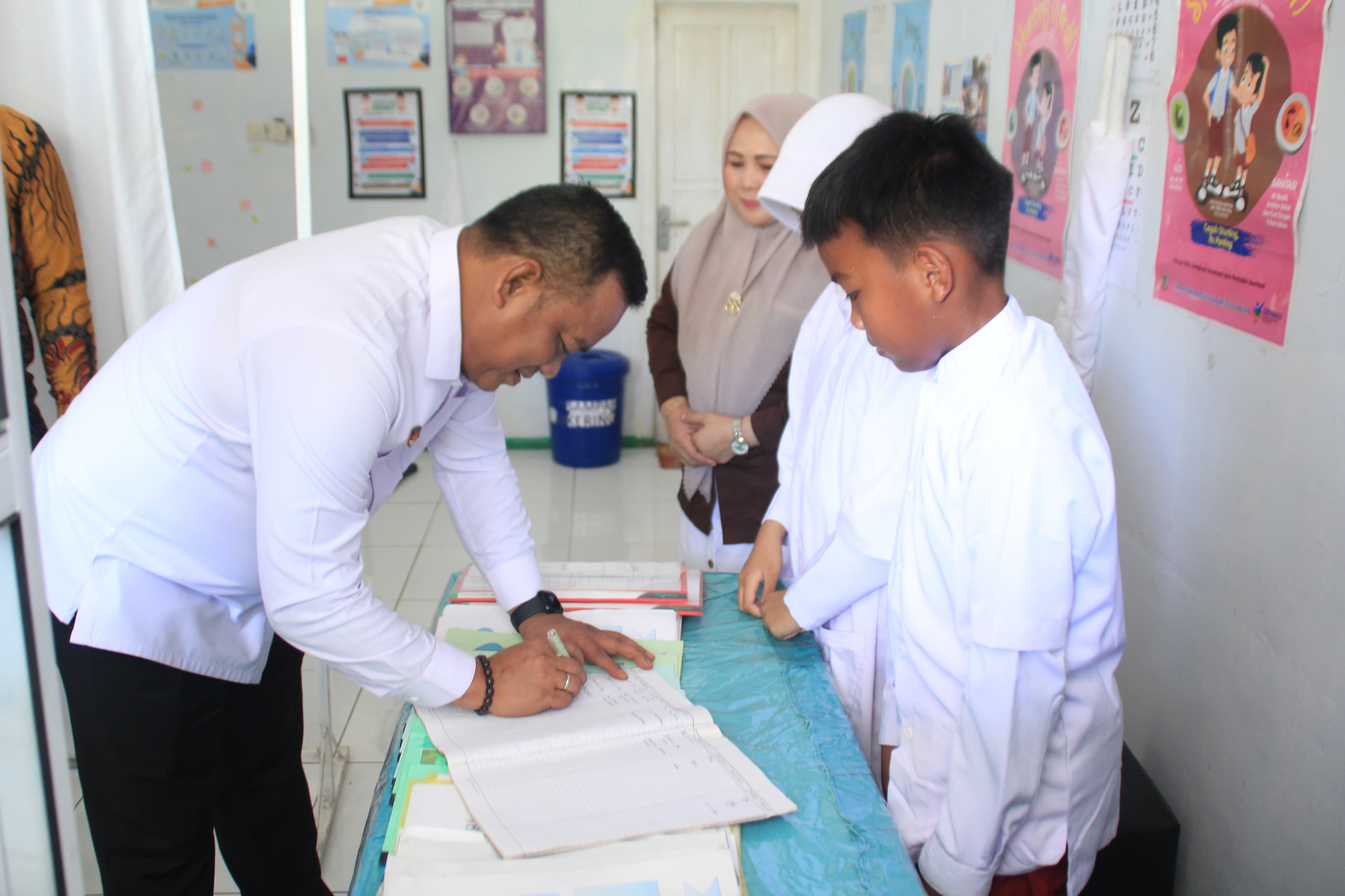 Bupati Luwu, Patahudding, meninjau langsung pelaksanaan Program Makan Bergizi Gratis (MBG) di SDN 227 Larompong, Kecamatan Larompong, Kamis (23/10/2025). Dalam kunjungan tersebut, Bupati didampingi Kepala Dinas Pendidikan Kabupaten Luwu, Andi Palanggi, dan Plt. Asisten III Bidang Administrasi Umum, Imran.