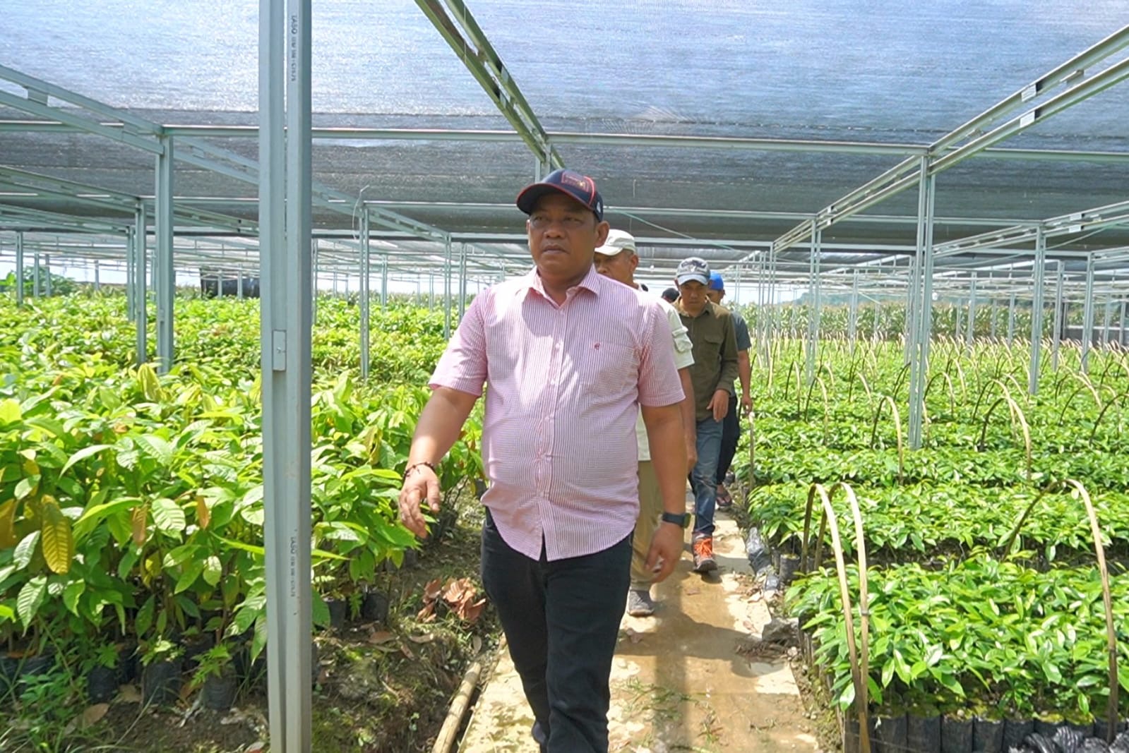 Peninjauan ini dilakukan untuk melihat langsung pengembangan komoditas perkebunan unggulan yang dikelola oleh masyarakat. Di lokasi tersebut, rombongan disambut pemilik pembibitan, Arifin, yang menjelaskan jenis tanaman yang dikembangkan.