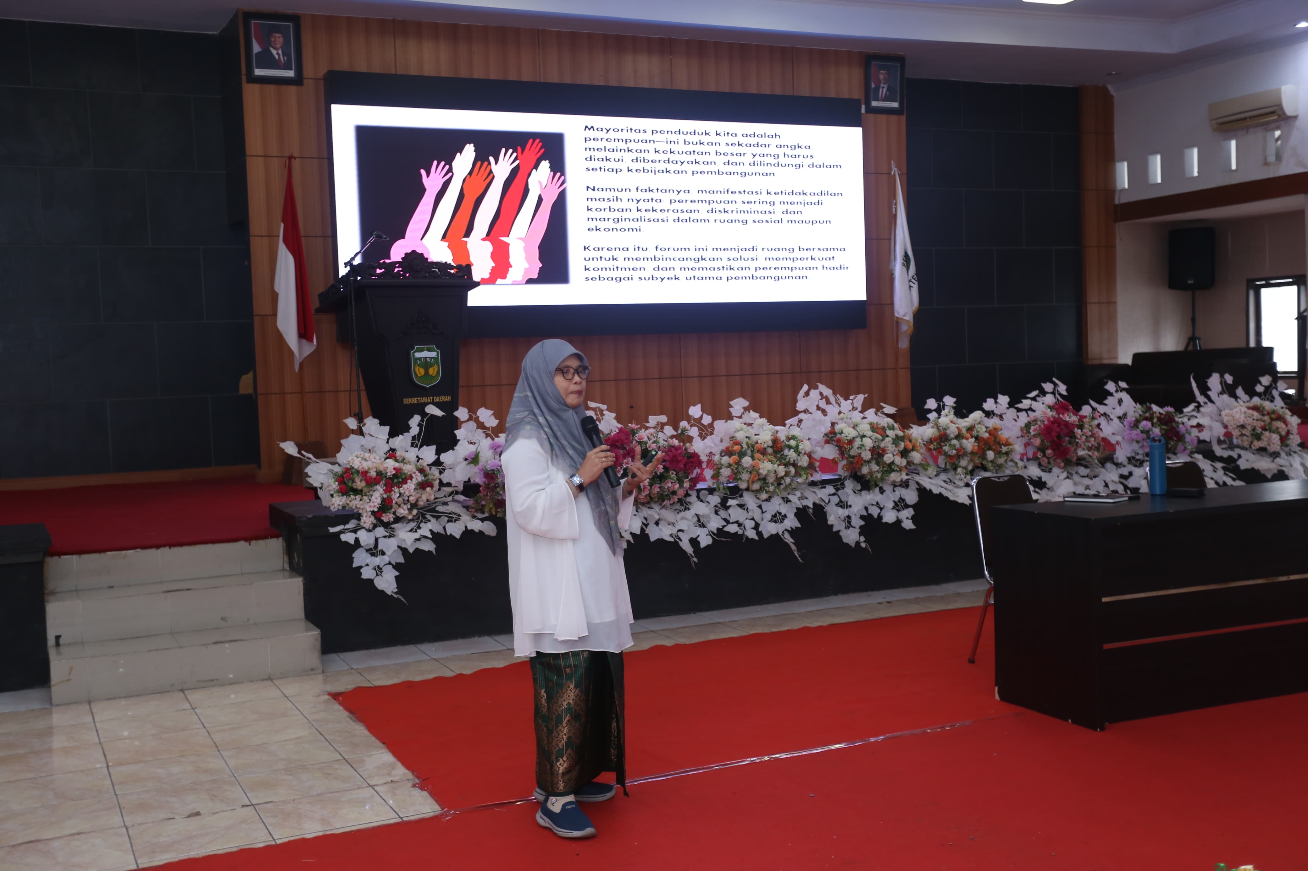 Dalam paparannya, ia menekankan bahwa perempuan dan anak merupakan kelompok mayoritas dalam struktur sosial masyarakat, sehingga harus diakui, diberdayakan, dan dilindungi dalam setiap kebijakan pembangunan.