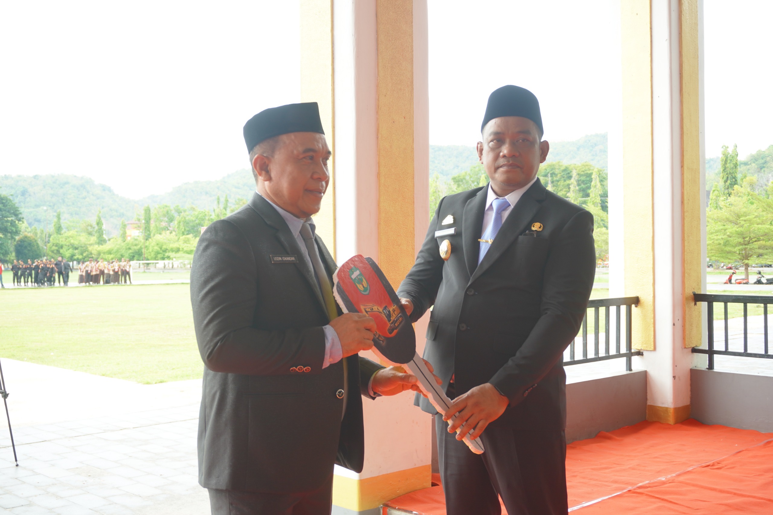 Disela-sela rangkaian upacara, Bupati Luwu menyerahkan 1 unit excavator kepada Plt. Kepala Dinas Ligkungan Hidup sebagai bentuk kepedulian Bupati Luwu terhadap kebersihan lingkungan.