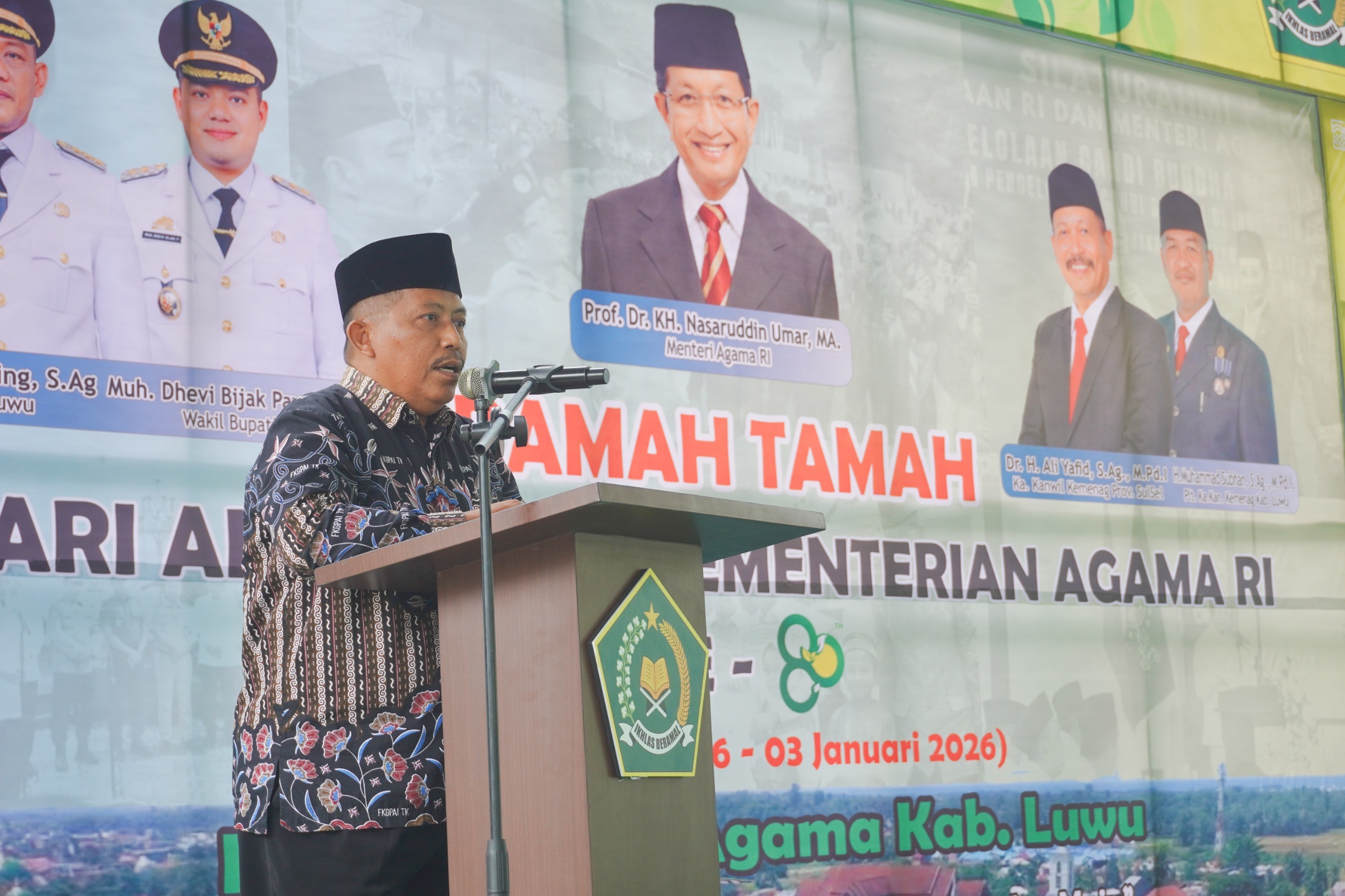 Dalam sambutannya, Sekda Luwu menyampaikan apresiasi yang tinggi kepada jajaran Kementerian Agama yang dinilainya tetap enerjik dan produktif meski sebagian telah memasuki masa purna bakti. Ia menyebut hal tersebut sebagai bentuk keberkahan dari pengabdian panjang dalam membina nilai-nilai keagamaan di Kabupaten Luwu.