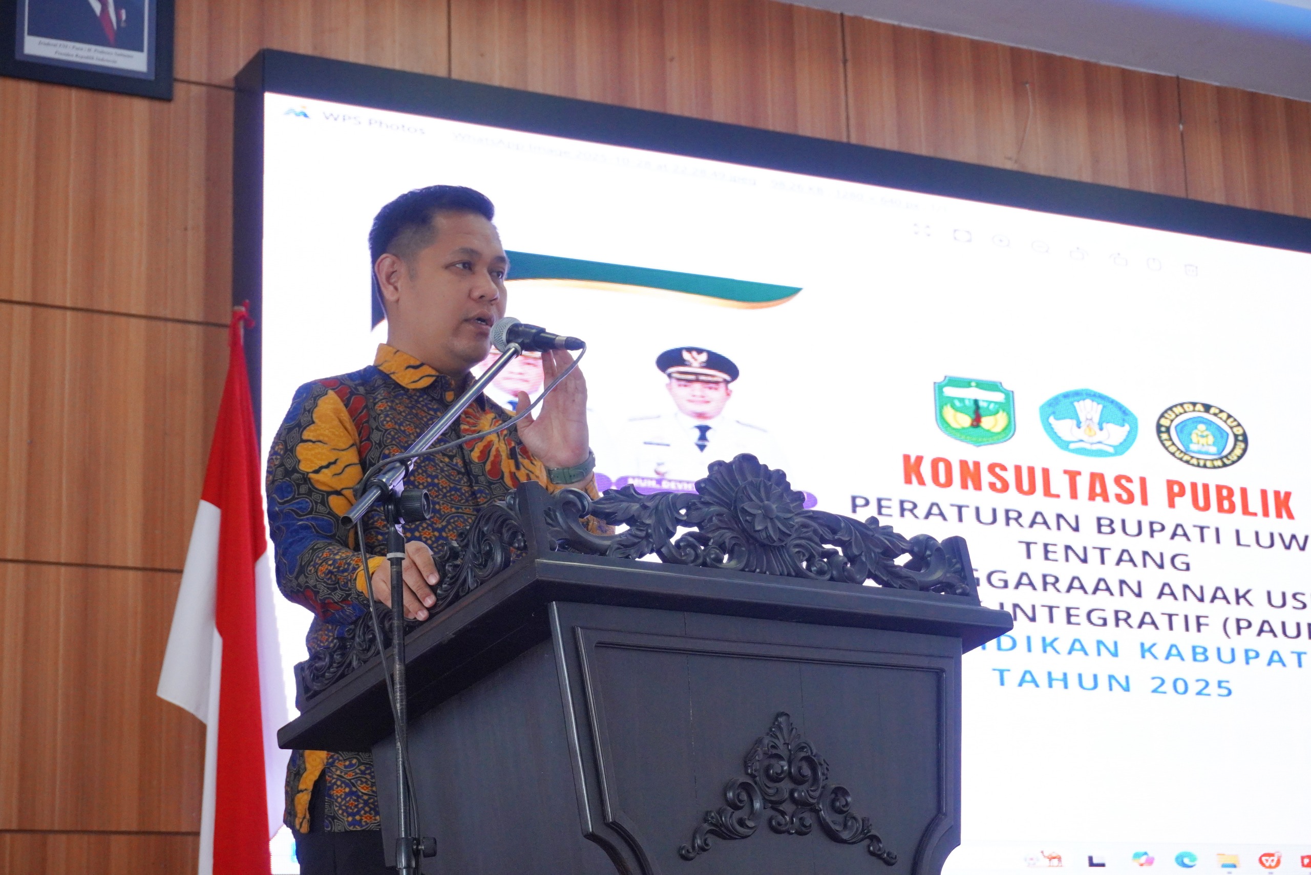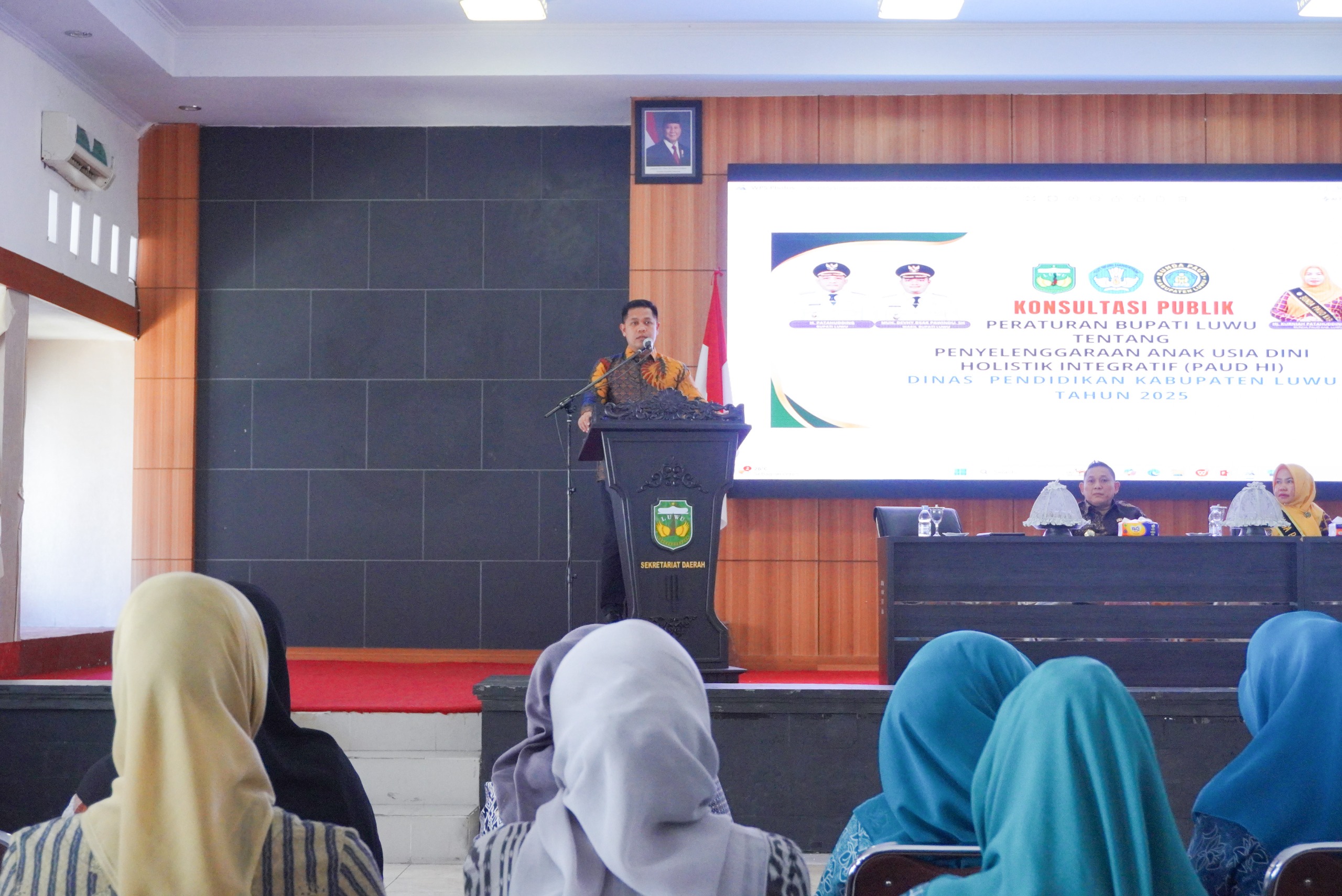 Pemerintah Kabupaten Luwu melalui Dinas Pendidikan menggelar Konsultasi Publik Penyelenggaraan Pendidikan Anak Usia Dini Holistik Integratif (PAUD HI) di Gedung Andi Kambo, Kamis (30/10/2025).