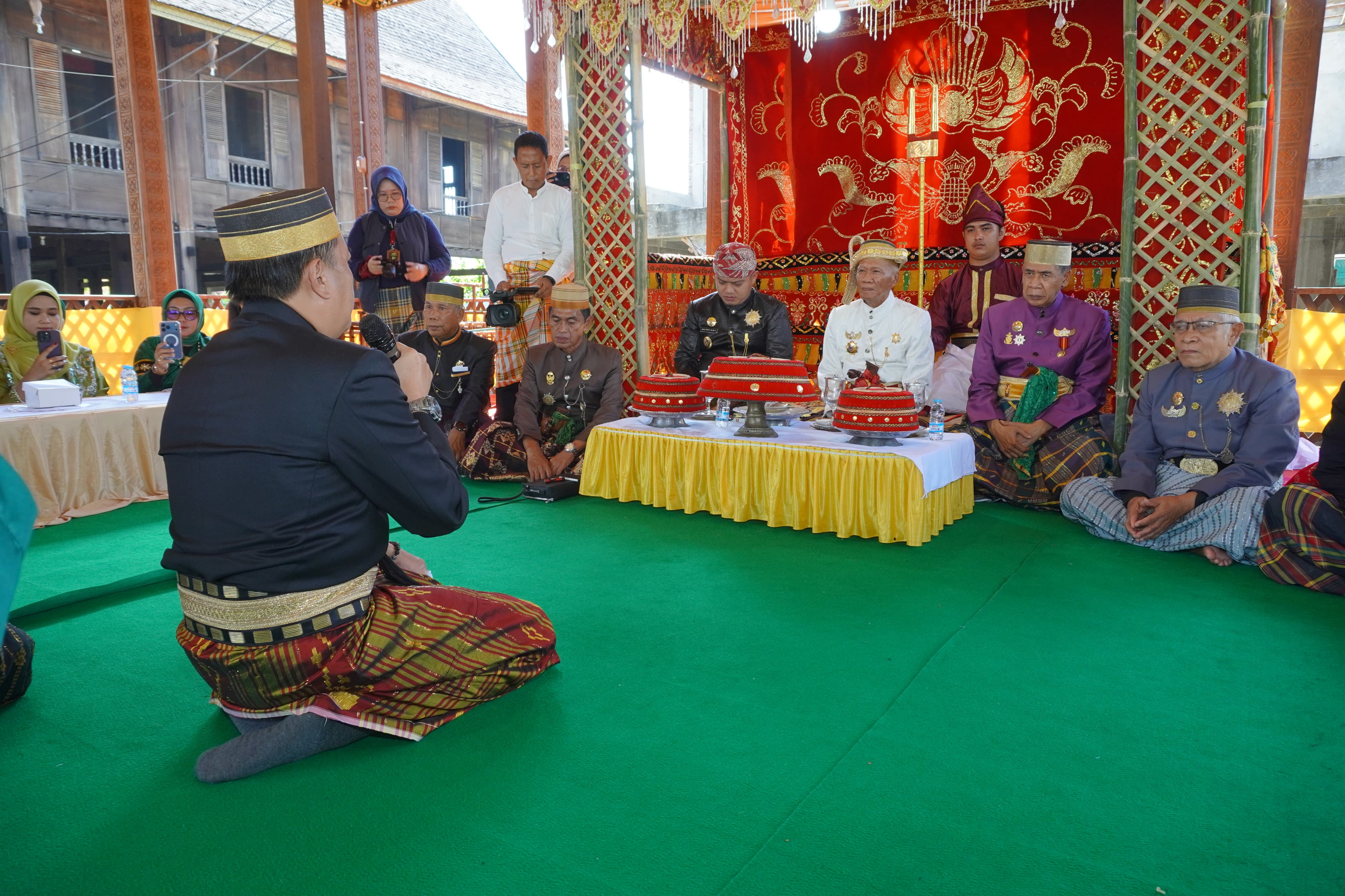 Dalam prosesi tersebut, Penjabat Sekretaris Daerah Kabupaten Luwu, Muhammad Rudi, menyampaikan maksud kehadiran jajaran pemerintah daerah kepada Datu Luwu.