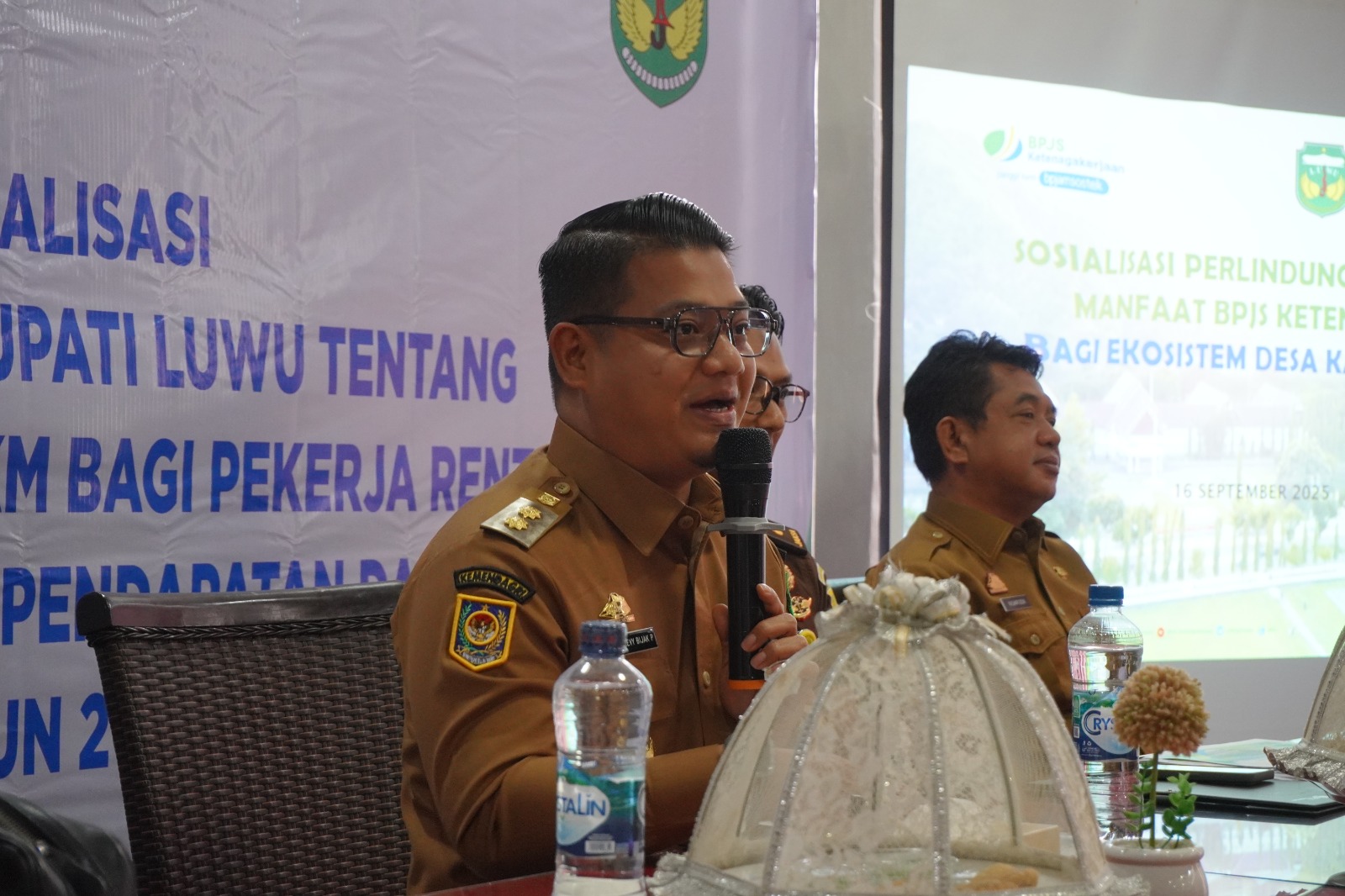 Dalam sambutannya, Wakil Bupati Luwu menyampaikan bahwa pekerja masyarakat rentan desa dan para pengurus lembaga kemasyarakatan desa memiliki peran yang sangat penting dalam membangun desa, namun mereka seringkali belum mendapatkan perlindungan yang memadai dalam hal keselamatan kerja maupun jaminan ketika terjadi musibah.