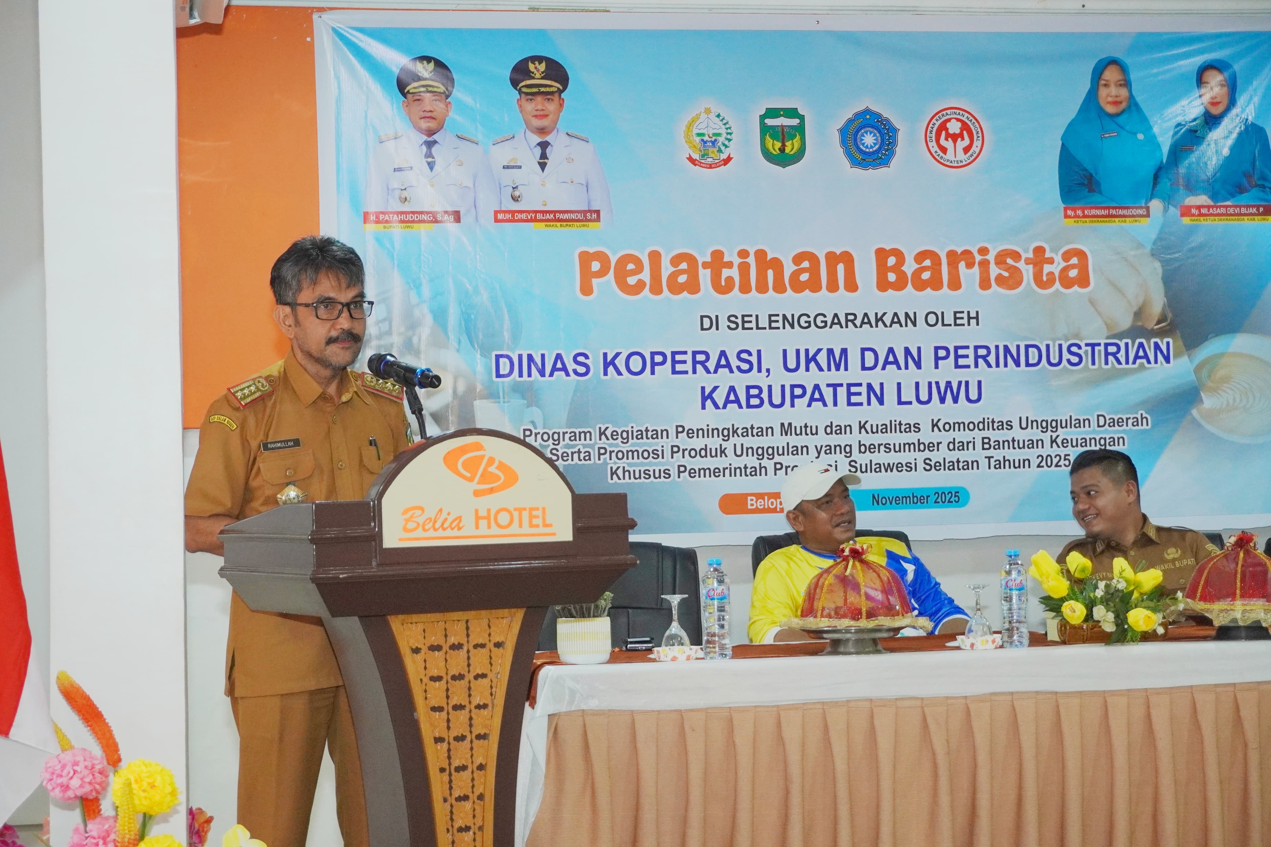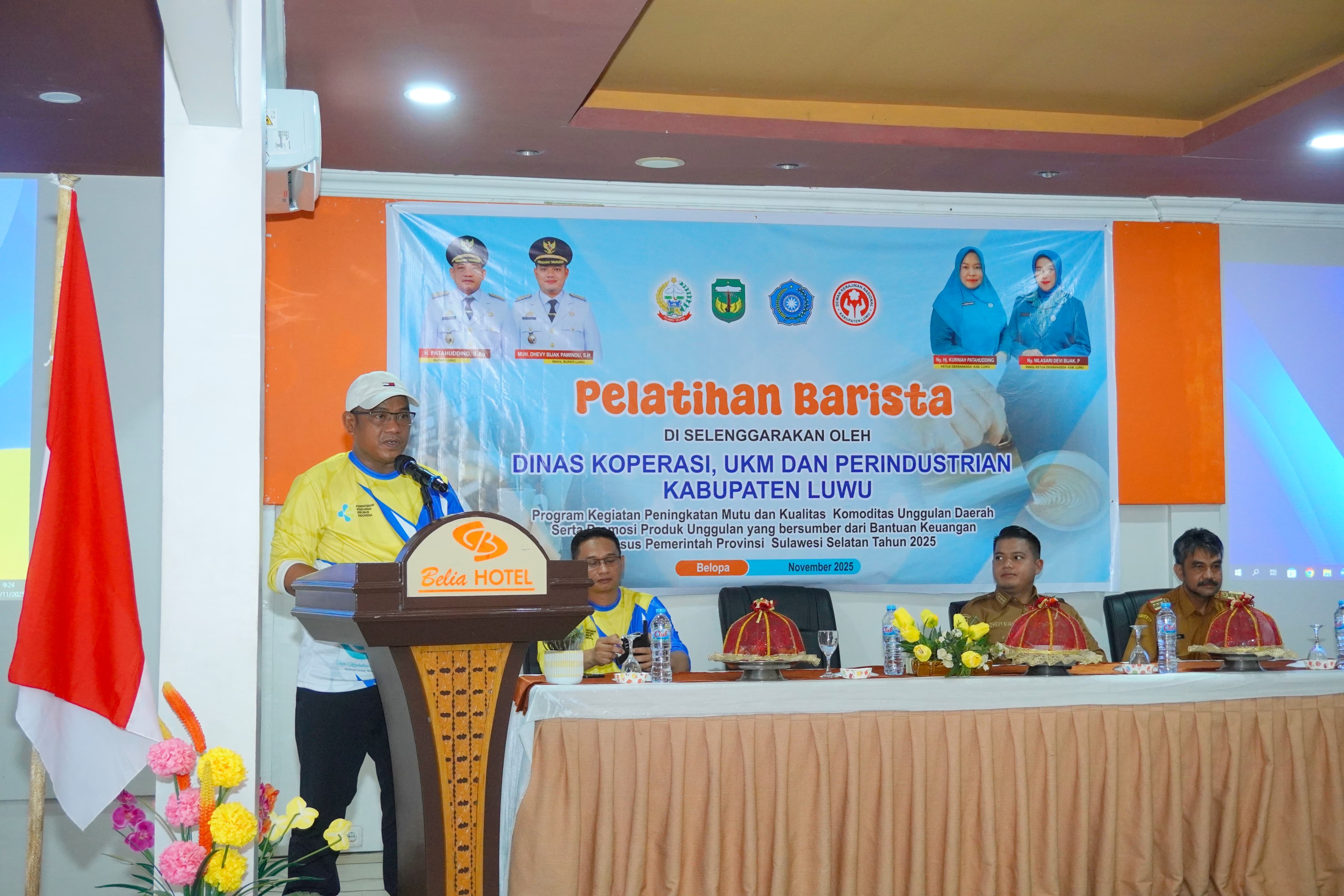 Pemerintah Kabupaten Luwu melalui Dinas Koperasi UKM dan Perindustrian menyelenggarakan pelatihan barista sebagai bagian dari program kegiatan peningkatan mutu dan kualitas komoditas unggulan daerah serta promosi produk unggulan yang bersumber dari Bantuan Keuangan Khusus dari Provinsi Sulawesi Selatan tahun 2025. Kegiatan berlangsung di Aula Hotel Belia Belopa, Selasa (25/11/2025).
