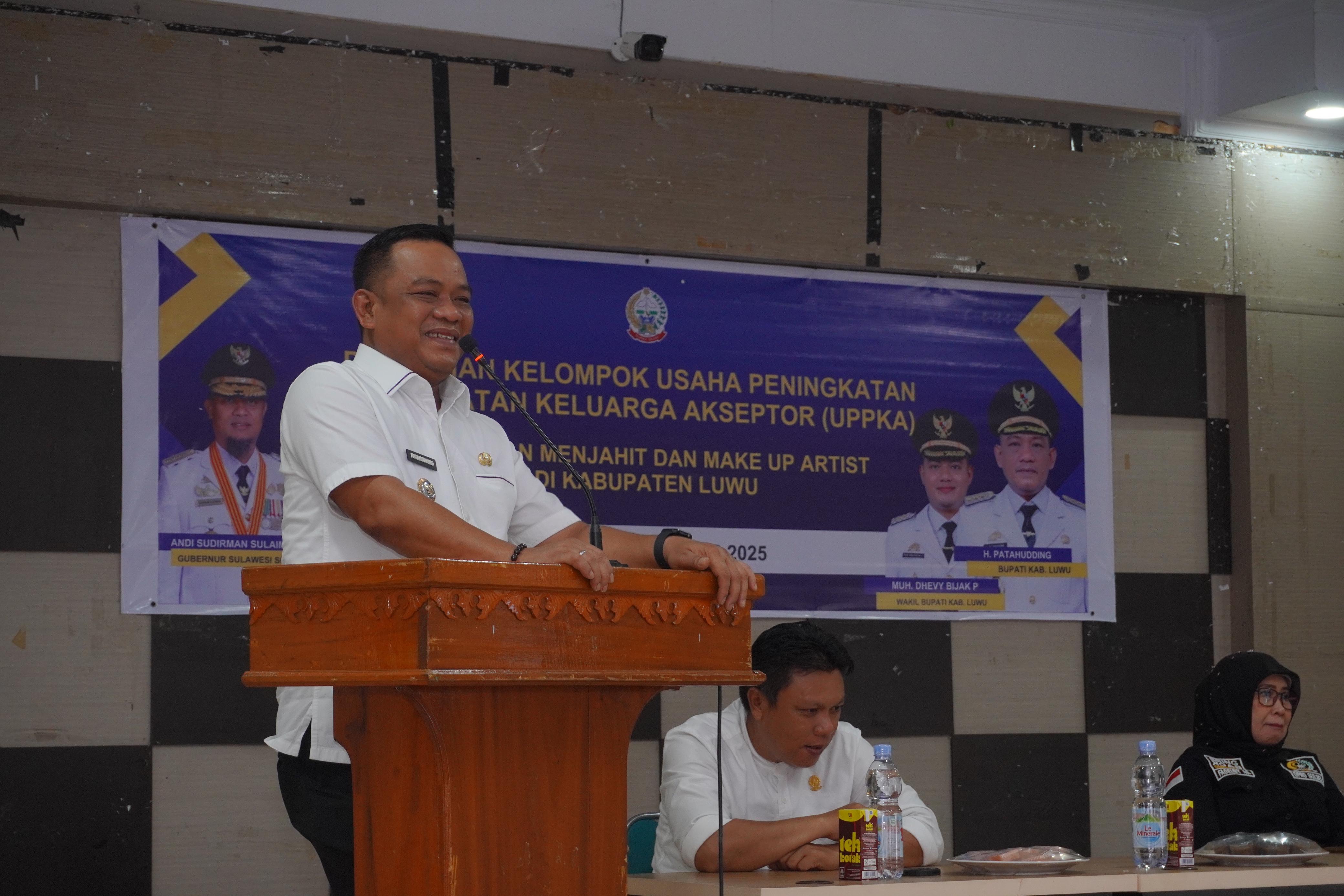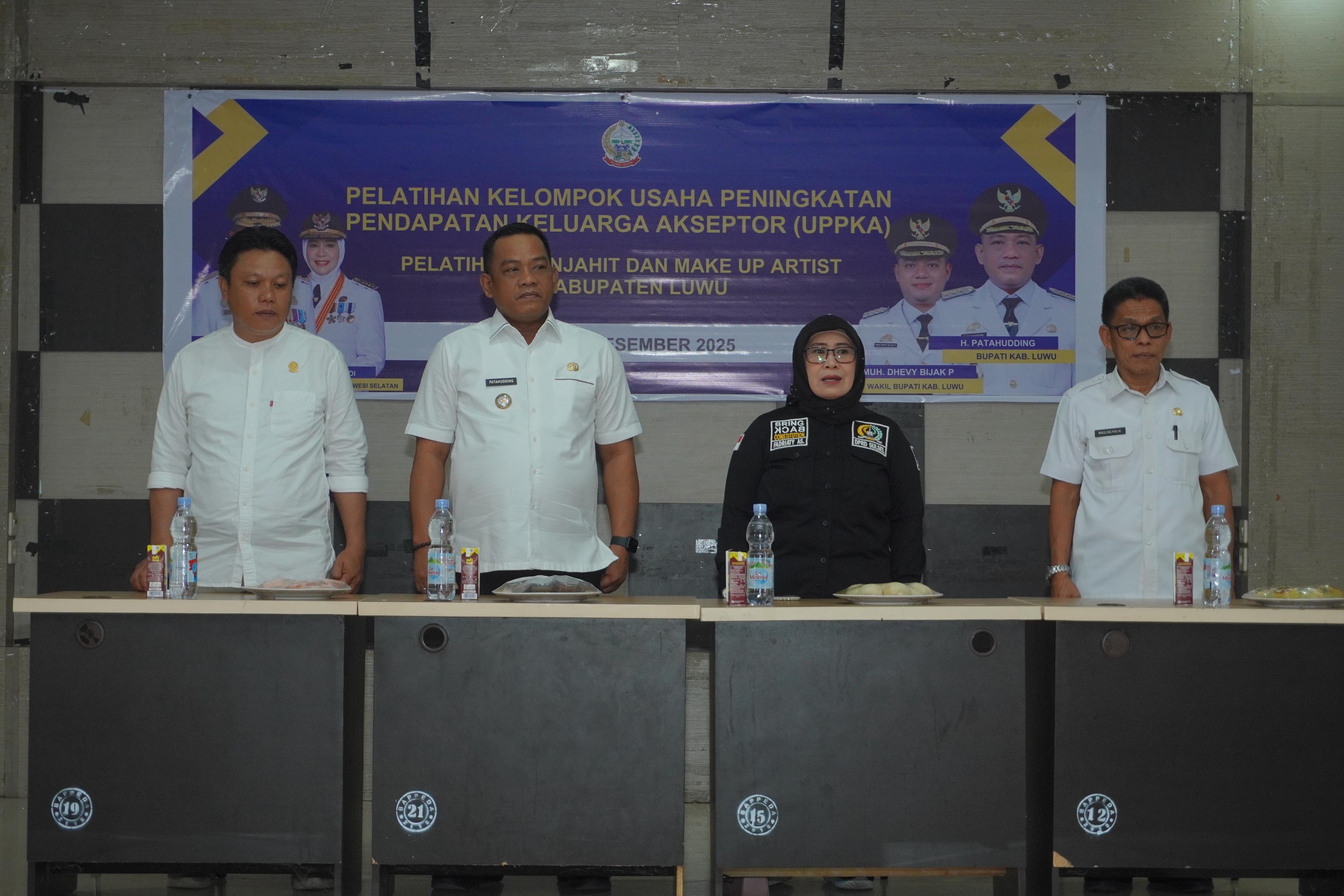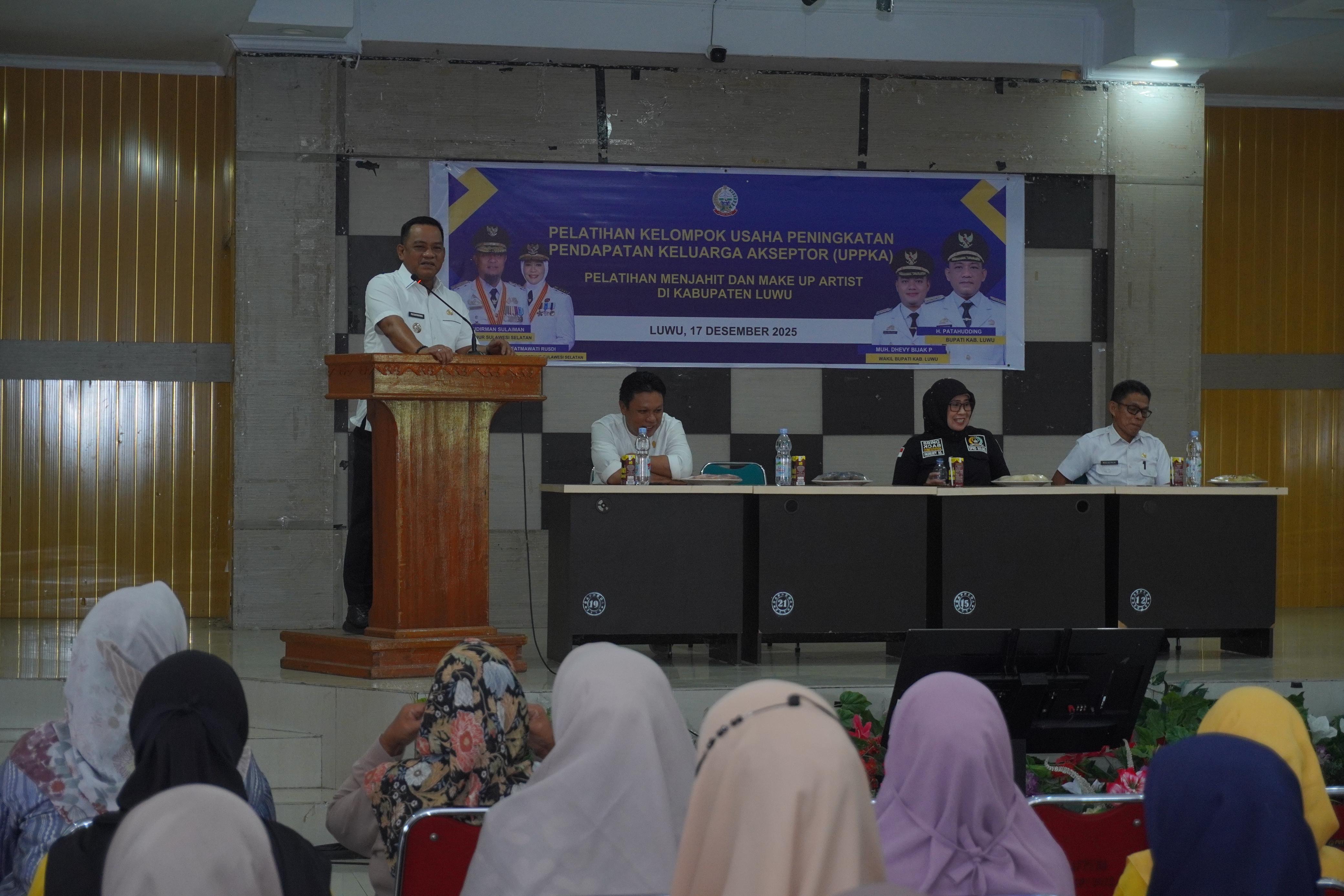Bupati Luwu, Patahudding, secara resmi membuka Pelatihan Kelompok Usaha Peningkatan Pendapatan Keluarga Akseptor (UPPKA) berupa pelatihan menjahit dan Make Up Artist (MUA) sebagai upaya memperkuat usaha ekonomi keluarga dan mendorong pertumbuhan UMKM. Acara berlangsung di Aula Bappelitbangda Belopa, Rabu (17/12/2025).