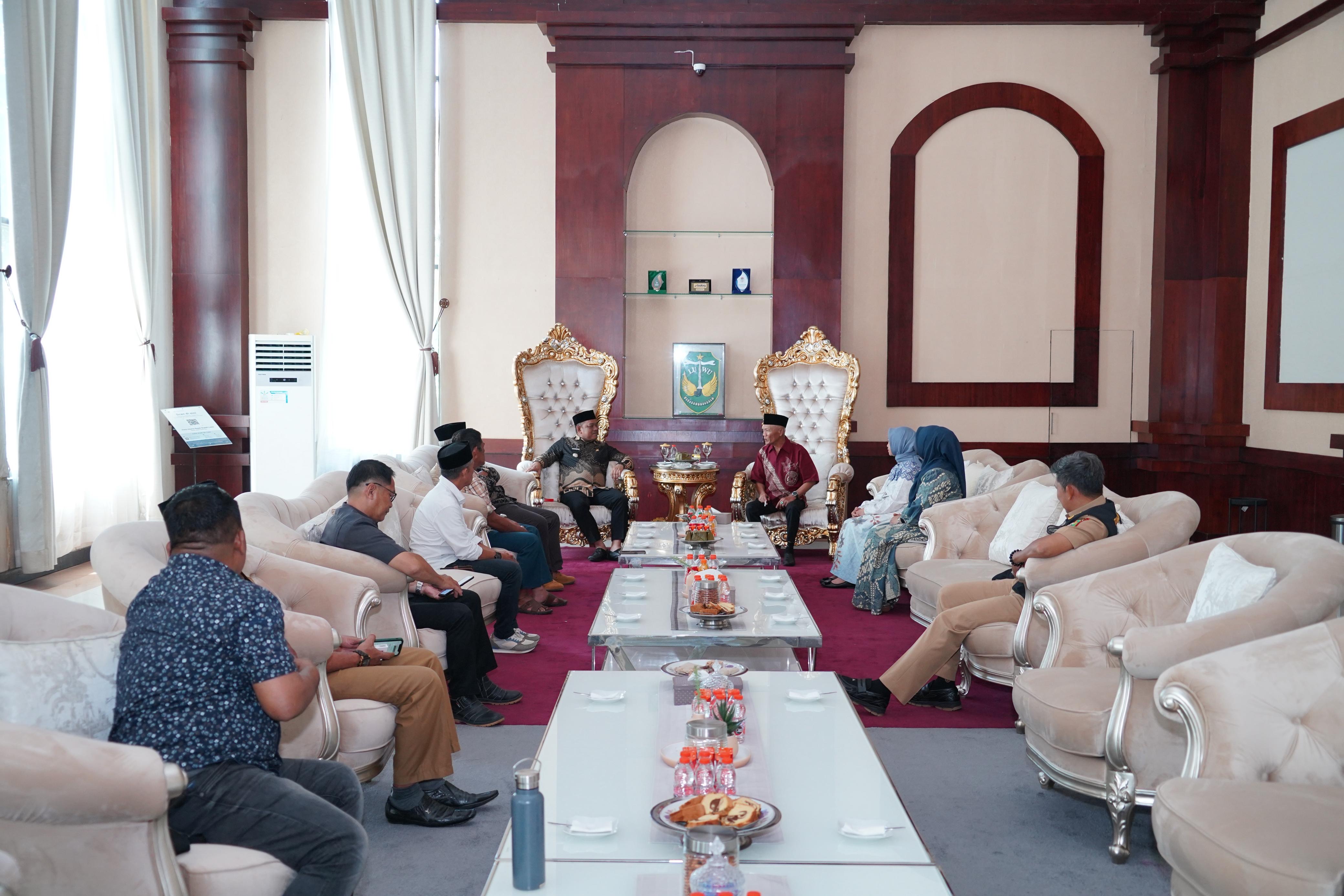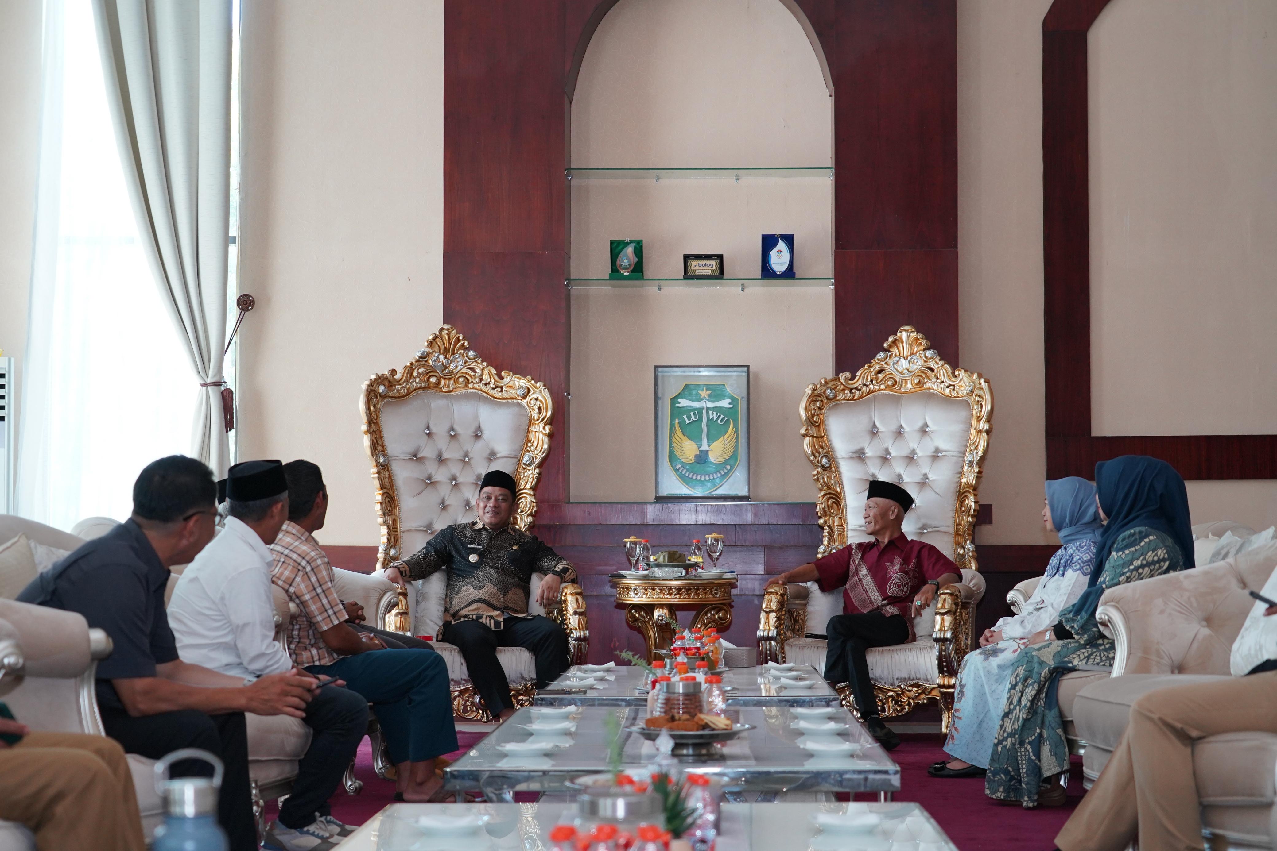 Bupati Luwu, Patahudding, menerima kunjungan silaturahmi Datu Luwu ke-40, Andi Maradang Mackulau Opu To Bau bersama perangkat adat Kedatuan Luwu di Rumah Jabatan Bupati Luwu, Kelurahan Pammanu, Selasa (28/4/2026).
