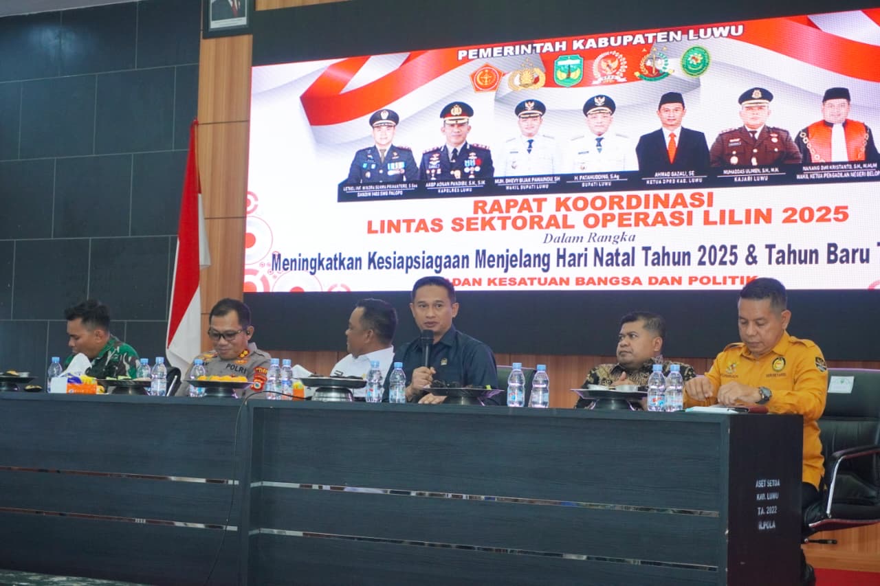 Pemerintah Kabupaten Luwu menggelar Rapat Koordinasi Forum Koordinasi Pimpinan Daerah (Forkopimda) lintas sektoral Operasi Lilin 2025 dalam rangka meningkatkan kesiapsiagaan menjelang Hari Raya Natal dan Tahun Baru 2026. Rapat ini diselenggarakan oleh Badan Kesatuan Bangsa dan Politik Kabupaten Luwu dan dipimpin langsung oleh Bupati Luwu, Patahudding.