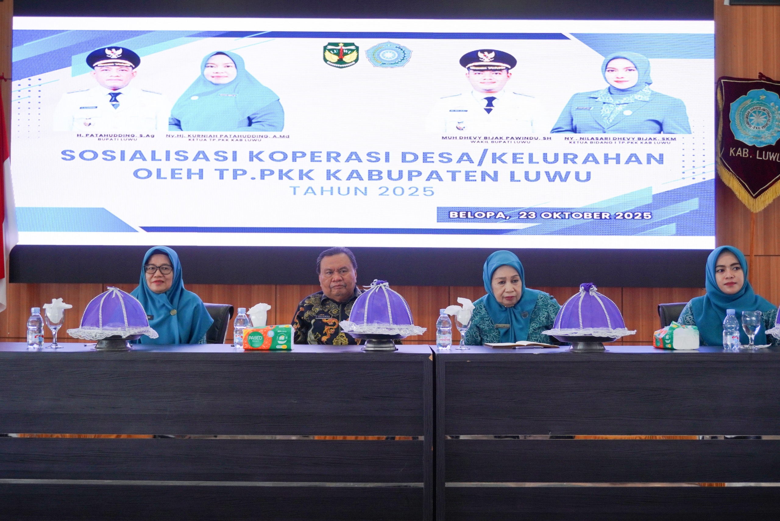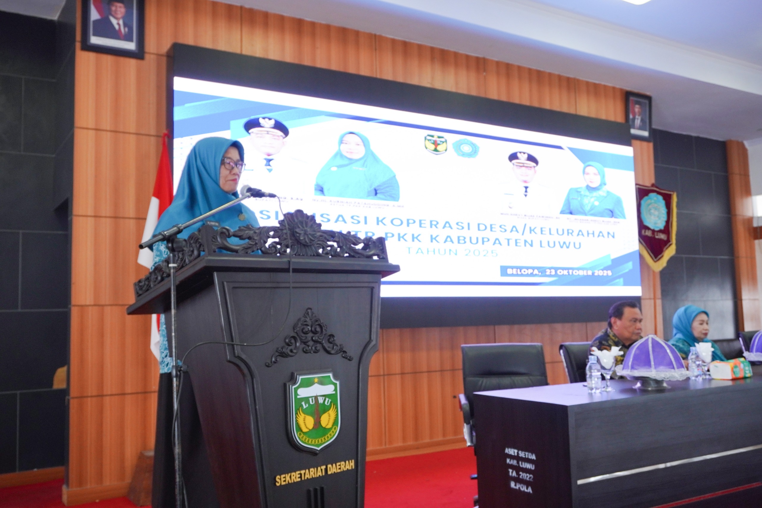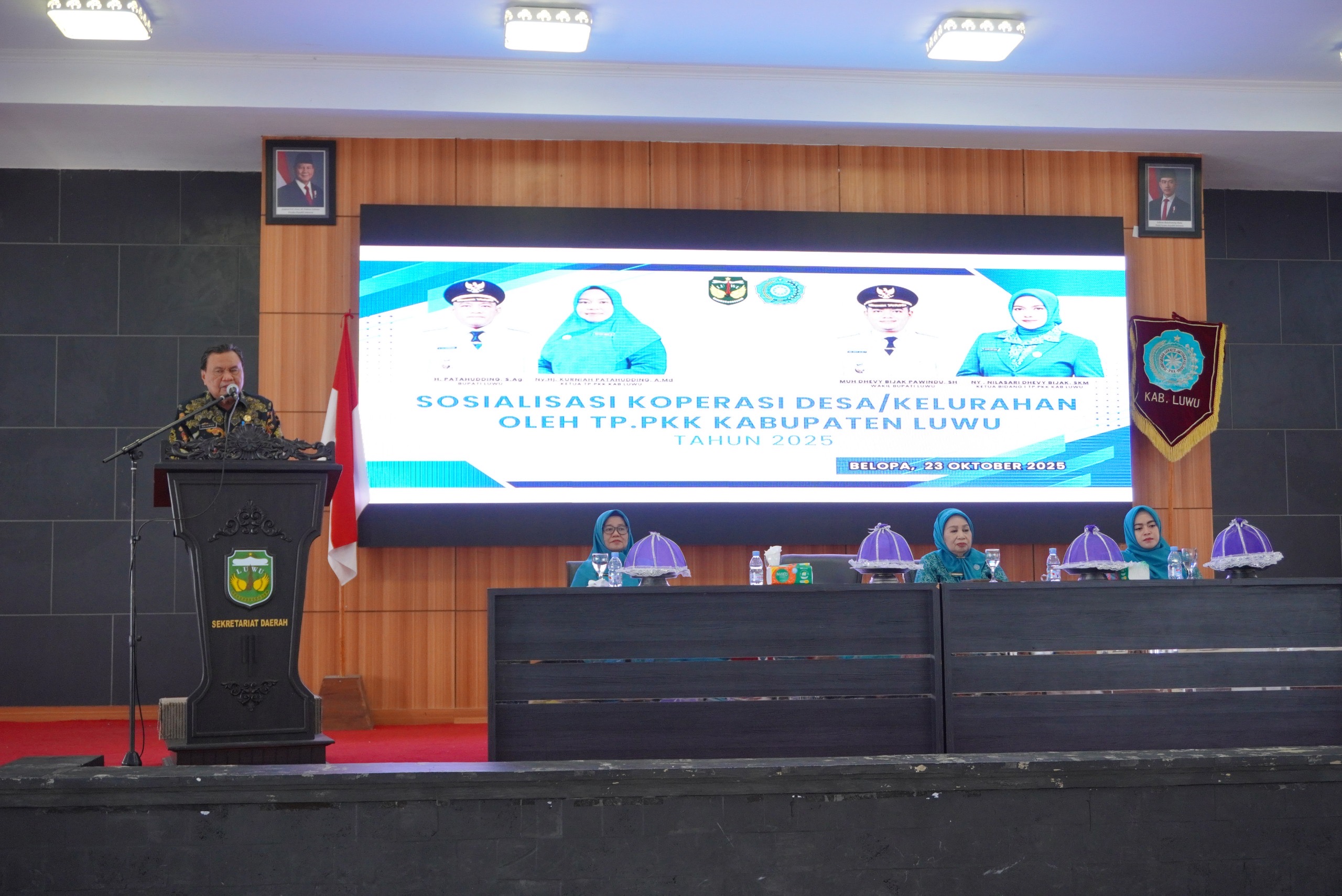 Belopa, Luwu – Sekretaris Daerah Kabupaten Luwu, Drs. H. Sulaiman, MM, secara resmi membuka kegiatan Sosialisasi Koperasi Desa/Kelurahan Tim Penggerak PKK Kabupaten Luwu yang dilaksanakan di aula Andi Kambo, Kompleks Perkantoran Bupati Luwu, Kamis (23/10/2025).