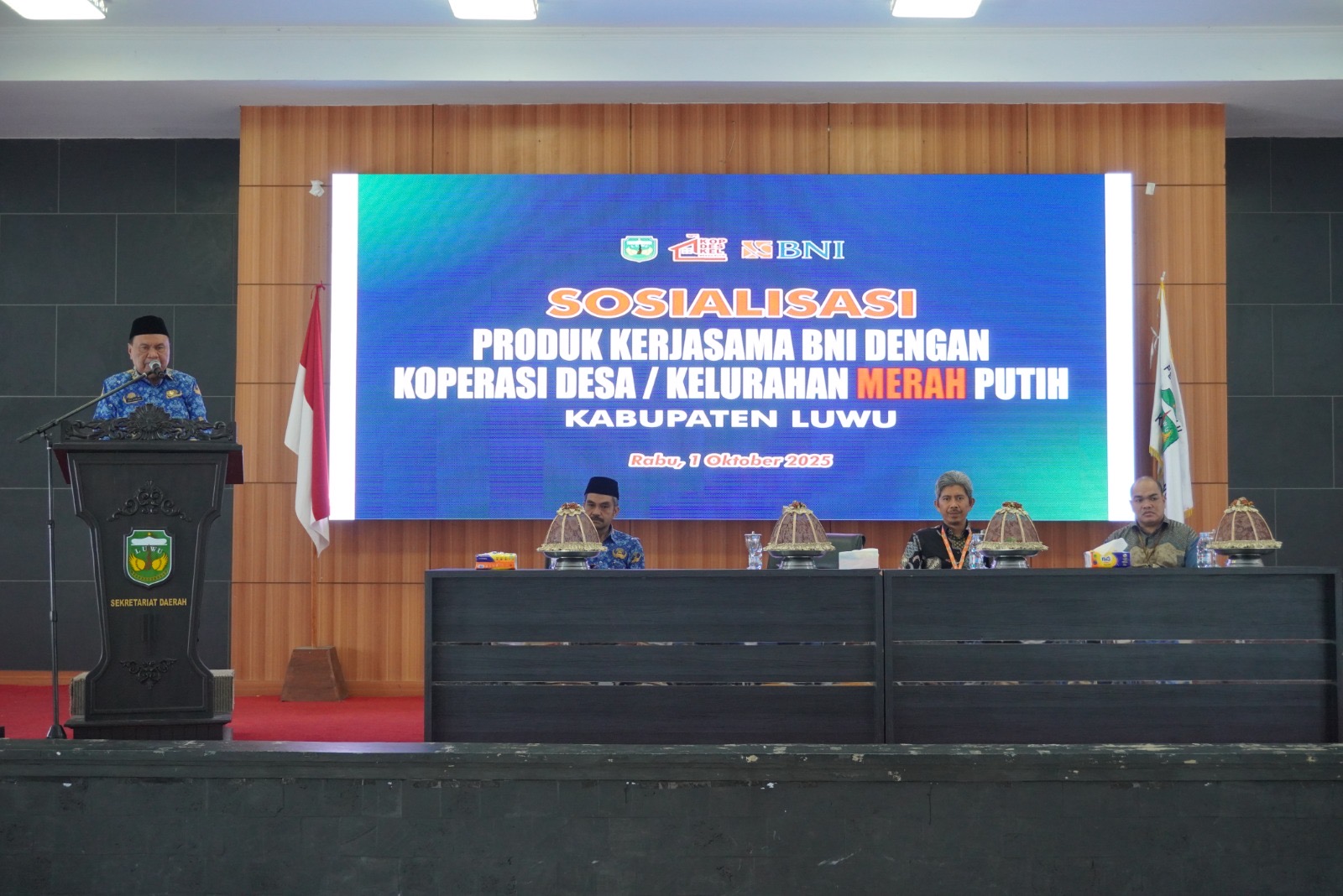 //Sekda Luwu Buka Sosialisasi Produk Kerjasama BNI Dengan Koperasi Desa/Kelurahan Merah Putih.