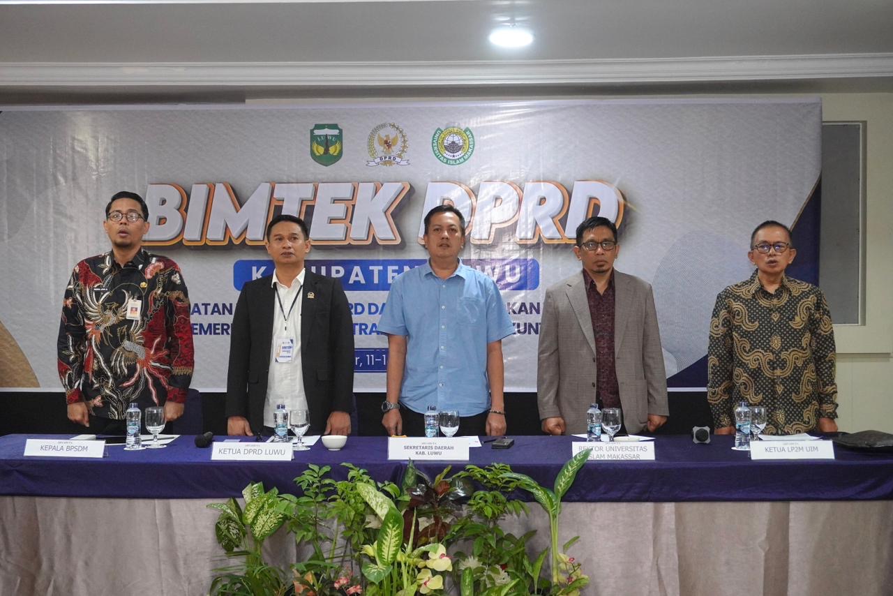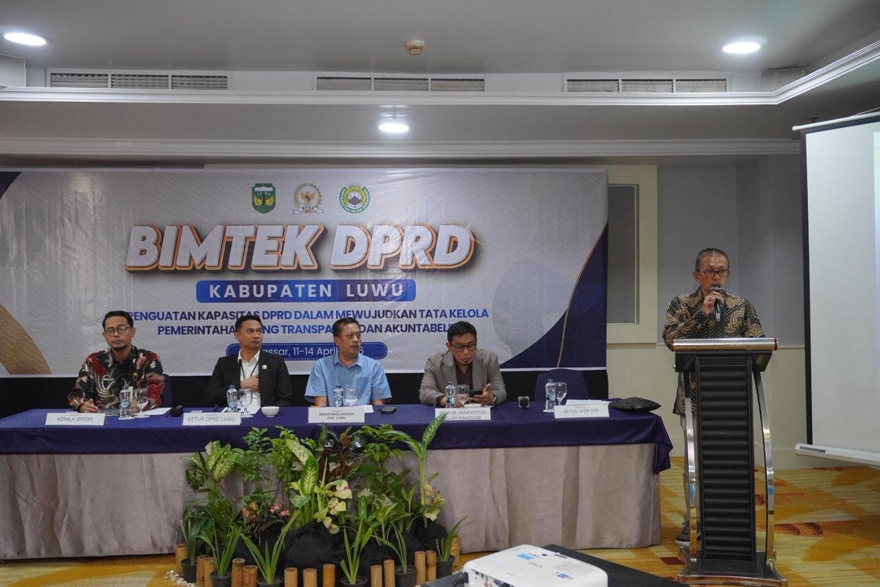 Pimpinan dan Anggota DPRD Kabupaten Luwu mengikuti Bimbingan Teknis (Bimtek) dengan tema “Penguatan Kapasitas DPRD dalam Mewujudkan Tata Kelola Pemerintahan yang Transparan dan Akuntabel”. Kegiatan ini merupakan kerja sama Sekretariat DPRD Kabupaten Luwu dengan Lembaga Penelitian dan Pengabdian kepada Masyarakat (LP2M) Universitas Islam Makassar Al-Ghazali.