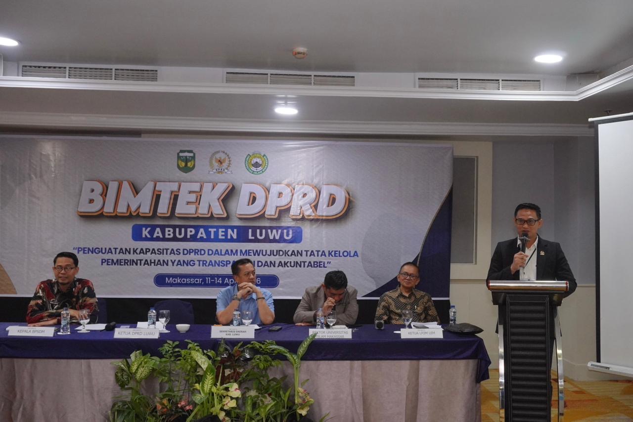 Sementara itu, Ketua LP2M Universitas Islam Makassar Al-Ghazali, Suardi Bakri, mengapresiasi kepercayaan yang diberikan DPRD Kabupaten Luwu dalam pelaksanaan kegiatan ini. Ia menjelaskan bahwa kegiatan Bimtek dilaksanakan berdasarkan rekomendasi Badan Pengembangan Sumber Daya Manusia (BPSDM) Provinsi Sulawesi Selatan, sehingga memiliki legitimasi dalam penyelenggaraannya.