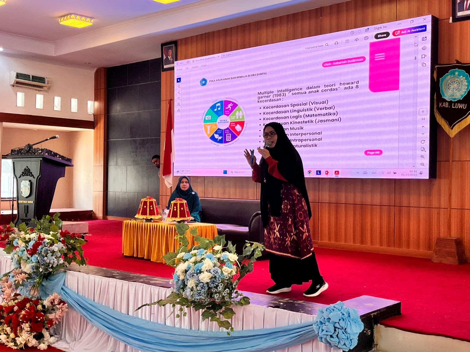 Seminar ini secara resmi dibuka oleh Ketua TP PKK Kabupaten Luwu, Hj. Kurniah Patahudding, yang dalam sambutannya menekankan pentingnya peran orang tua dalam membimbing generasi muda menghadapi tantangan dunia digital.