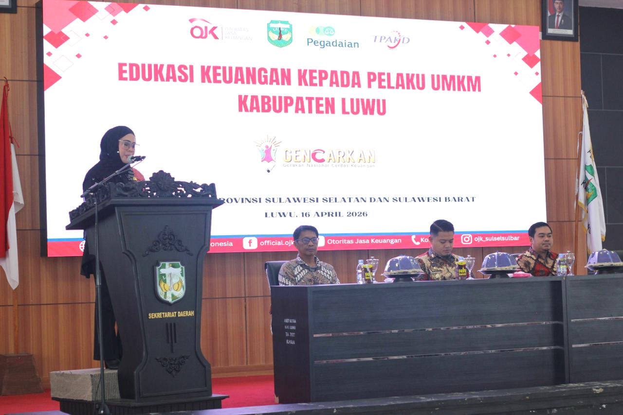Dalam sambutannya, Wakil Bupati Luwu menekankan bahwa literasi keuangan merupakan aspek penting dalam pengembangan usaha, khususnya bagi pelaku UMKM.