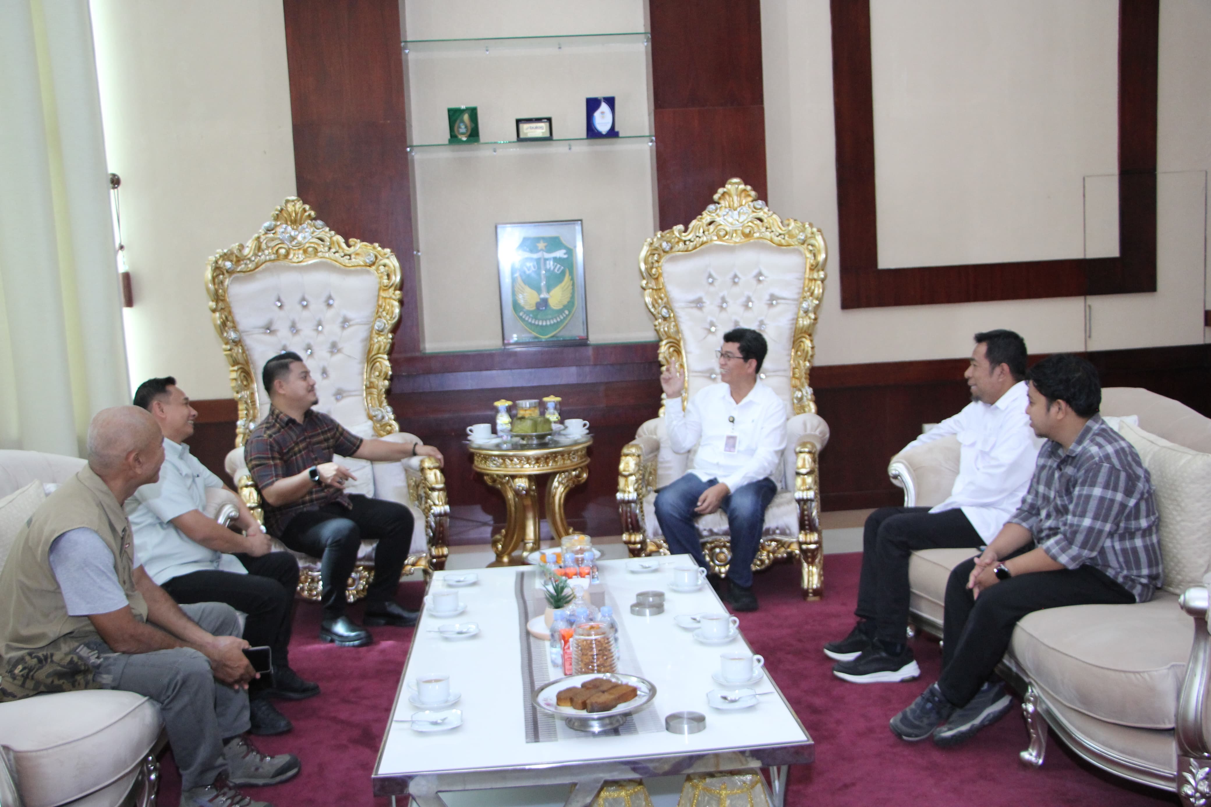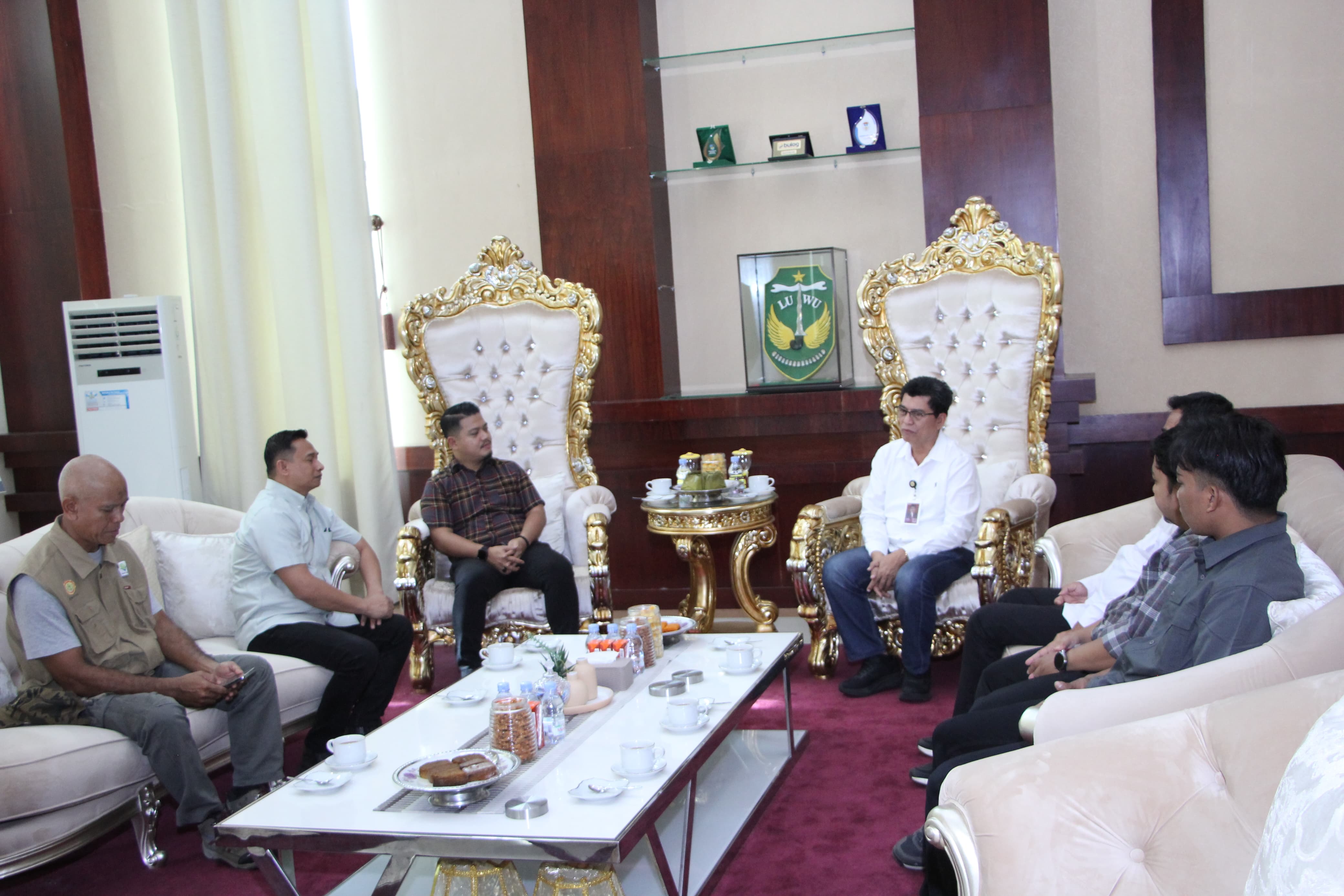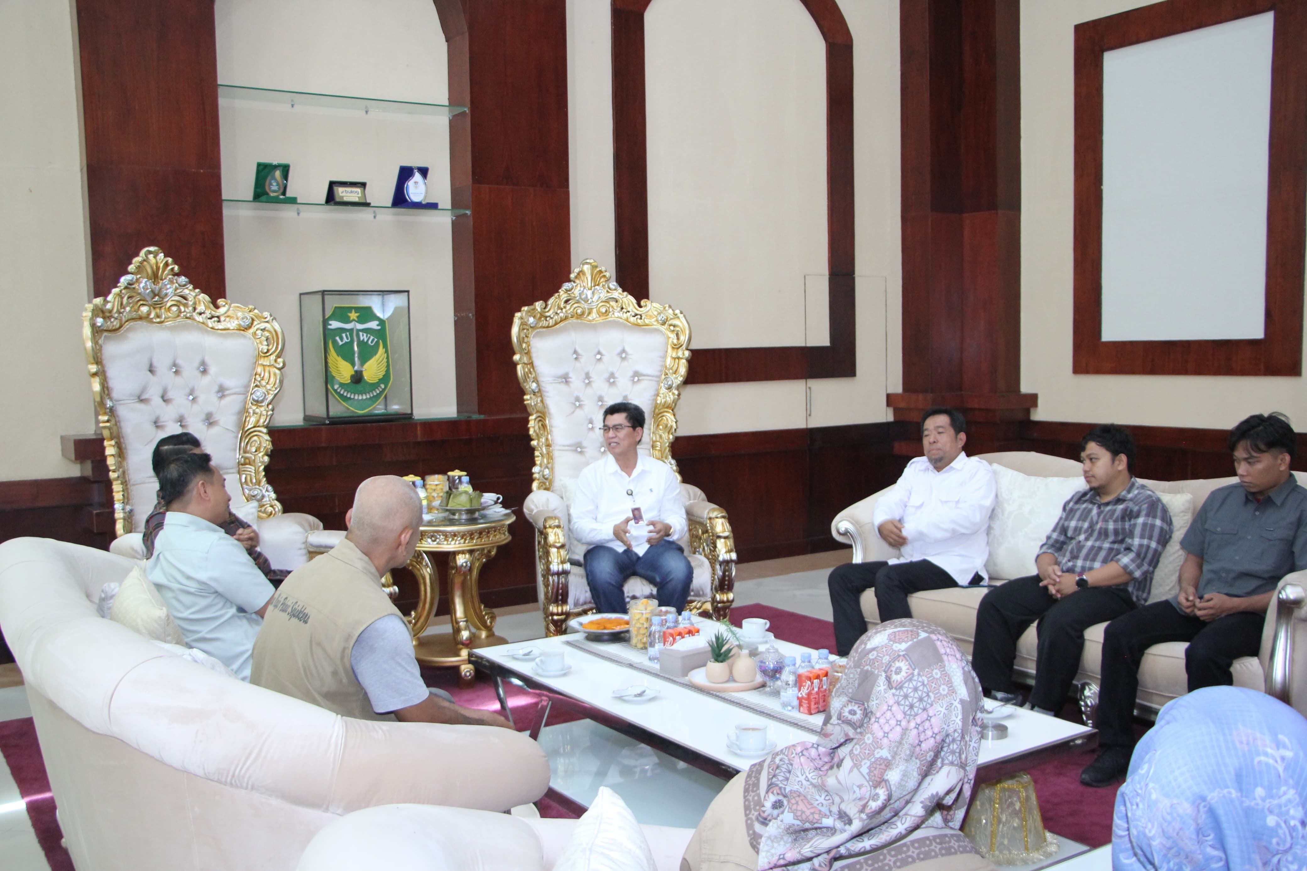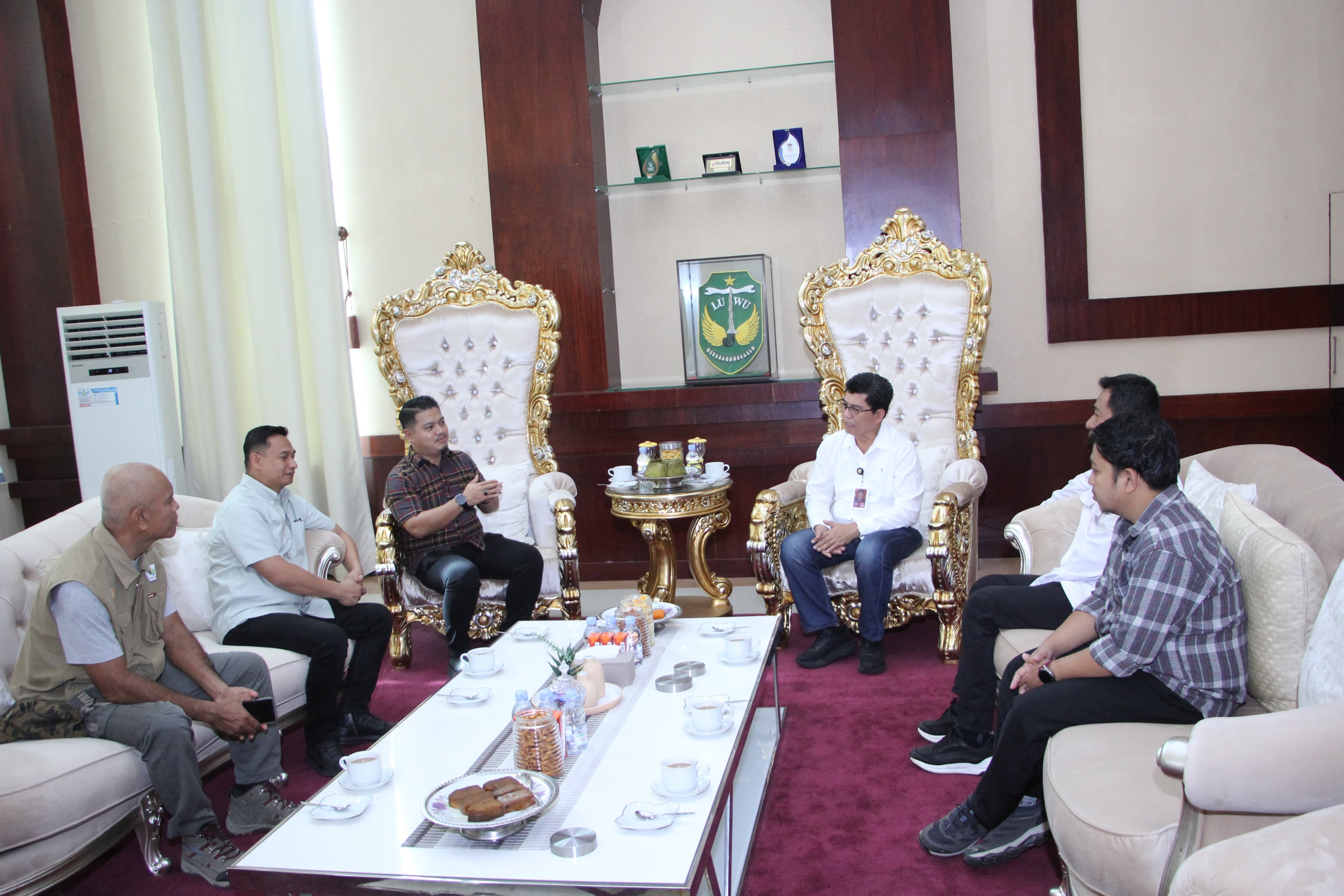 Wakil Bupati Luwu, Muh. Dhevy Bijak Pawindu, menerima kunjungan Kepala Balai Pengelolaan Lahan dan Irigasi Pertanian Kelas I Makassar, Rustan Massinai, di Rumah Jabatan Bupati Luwu, Kelurahan Pammanu, Jumat (3/4/2026).